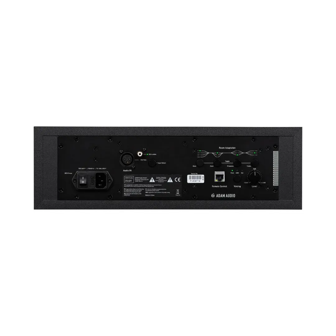 With advanced DSP electronics, the A44H allows for precise room adaptation and real-time tuning adjustments via the A Control software, enabling customizable sound profiles and integration with Sonarworks for room calibration.