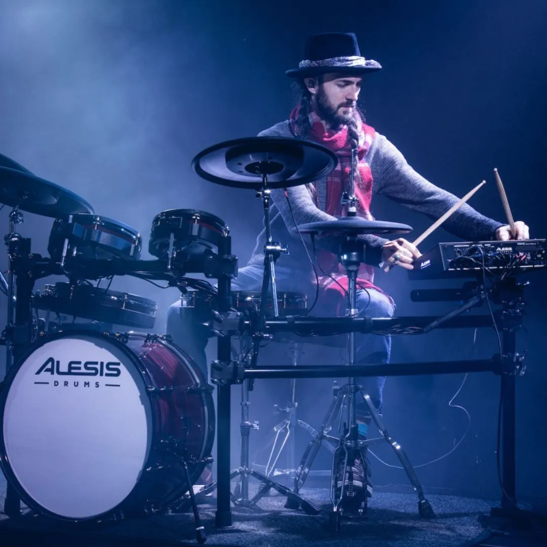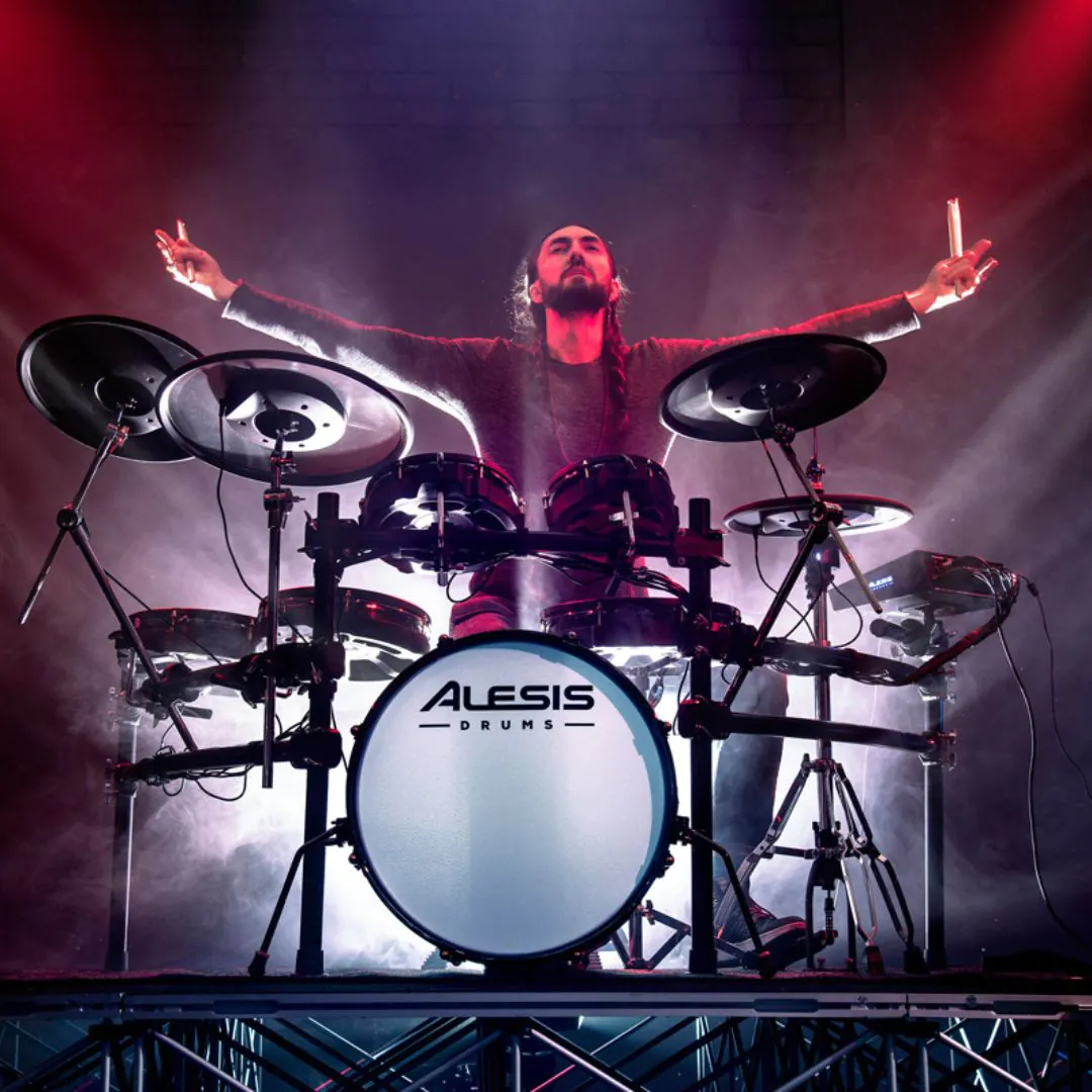 The Alesis Strata Prime is a 10-piece electronic drum kit with a 10.1″ touchscreen module, BFD3 sound engine, 75 kits, and mesh drums. Perfect for practice, performance, and studio work, it includes 360° cymbals, optional 20″ kick, and subscriptions to Drumeo® and Melodics Premium.