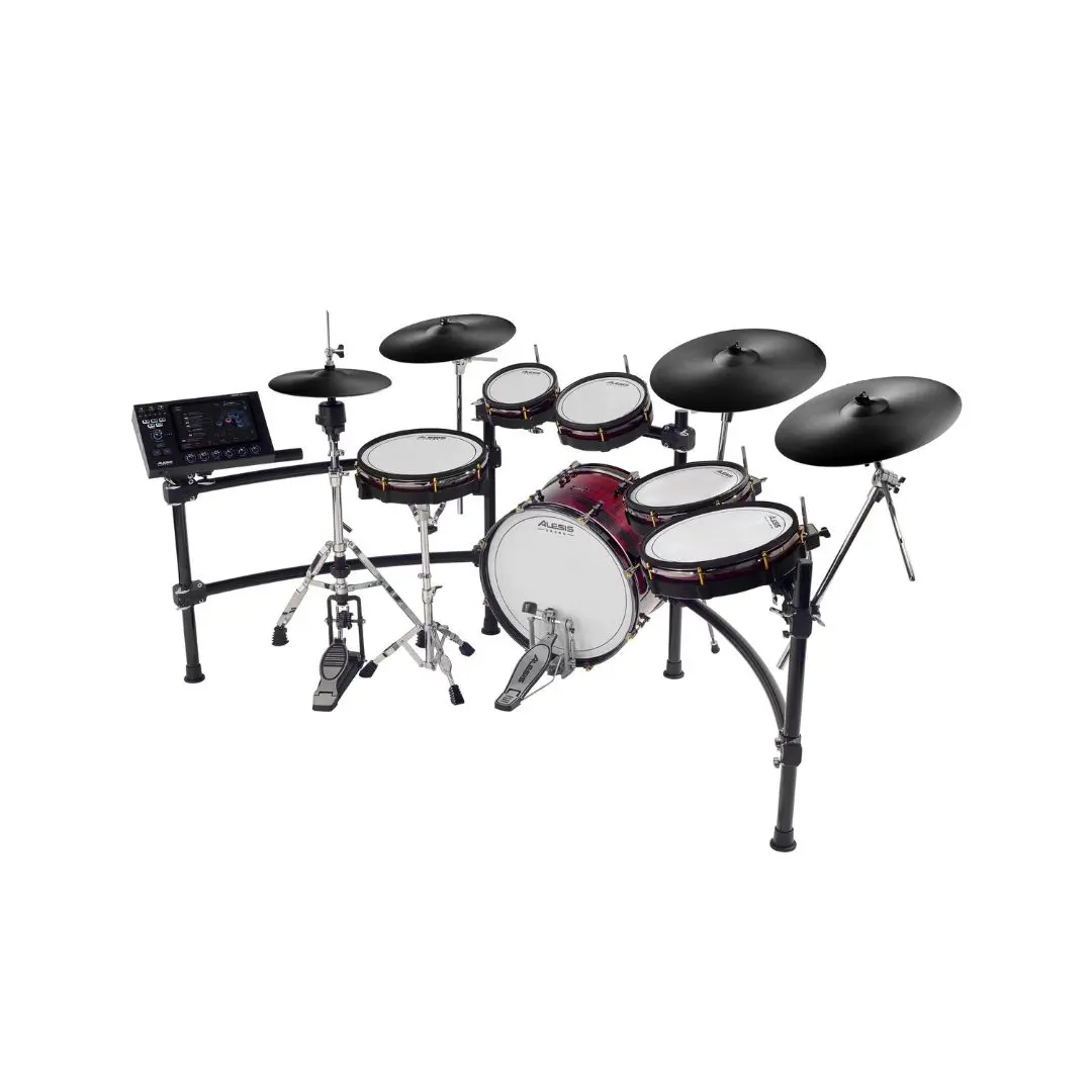 The Alesis Strata Prime is a cutting-edge 10-piece electronic drum kit designed for drummers seeking professional-level performance, creativity, and versatility. Featuring a 10.1″ touchscreen module powered by the BFD3 sound engine, it delivers 75 kits and 440 individual drum pieces, giving you access to an extensive palette of acoustic and electronic sounds.