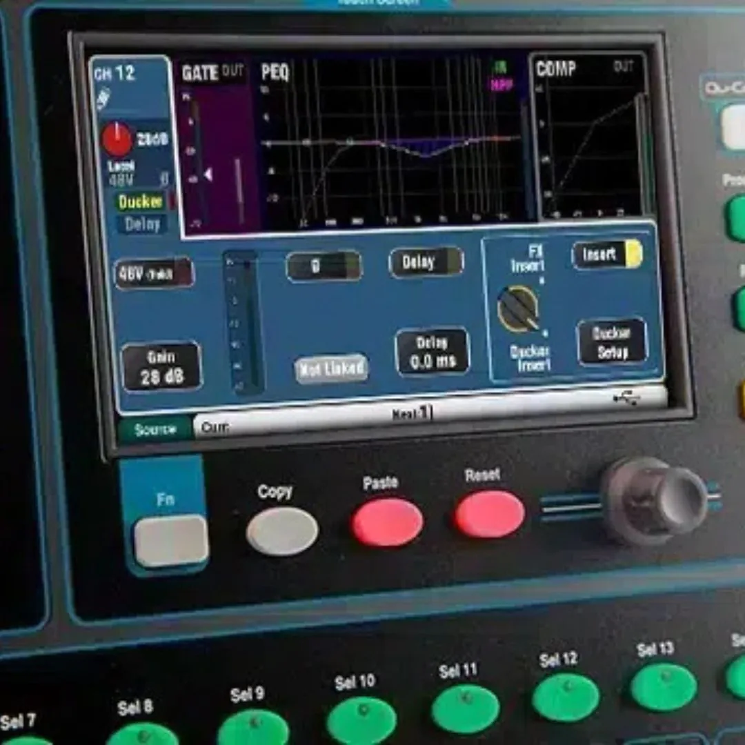 A vibrant full-colour touchscreen and intuitive control layout provide fast access to routing, 4-band parametric EQ, dynamics processing, and onboard FX. The integrated RackFX engine delivers studio-quality reverb, delay, modulation, and dynamic effects, eliminating the need for external processors.
