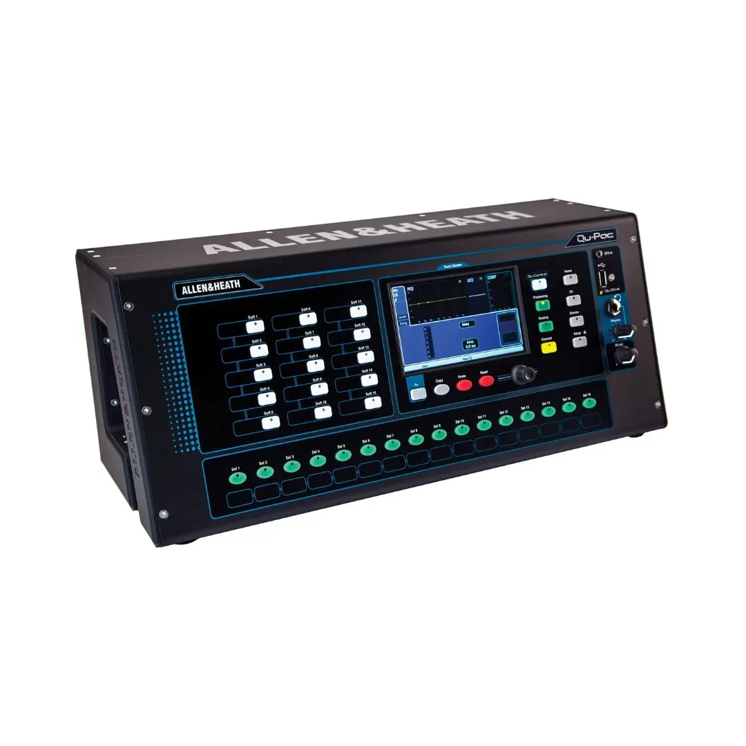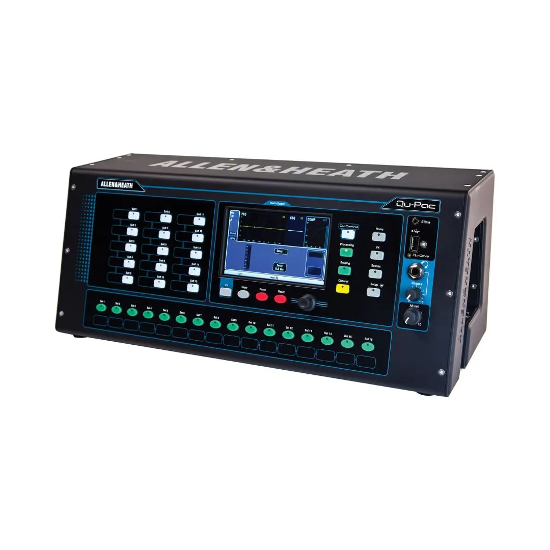 The Allen & Heath Qu-Pac digital mixer delivers full console-class mixing power in a compact 22-input, 12-output rackmount format. Featuring 16 recallable AnalogiQ preamps, a 32×32 USB audio interface, touchscreen control, and powerful onboard FX, Qu-Pac is ideal for live sound, streaming, mobile recording, and installed audio systems.