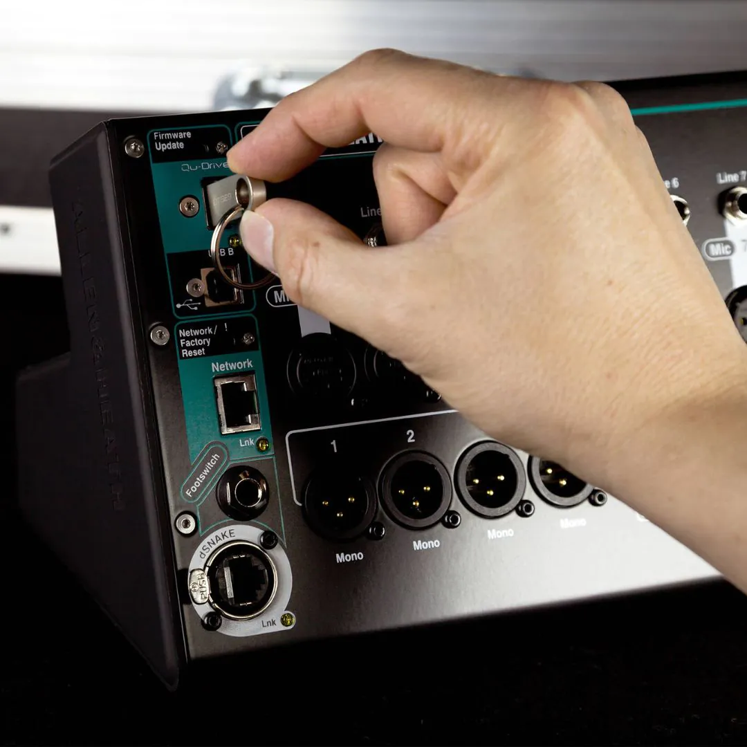 The Qu-Drive USB recording system enables direct multitrack recording and playback without requiring a computer or external interface. Users can capture up to 18 channels of high-resolution audio directly to a USB drive. This makes the Qu-SB ideal for live concert recording, rehearsal tracking, and virtual soundchecks. Playback functionality allows quick review and mixing of recorded sessions. The system ensures reliable, hassle-free recording in any live sound environment.