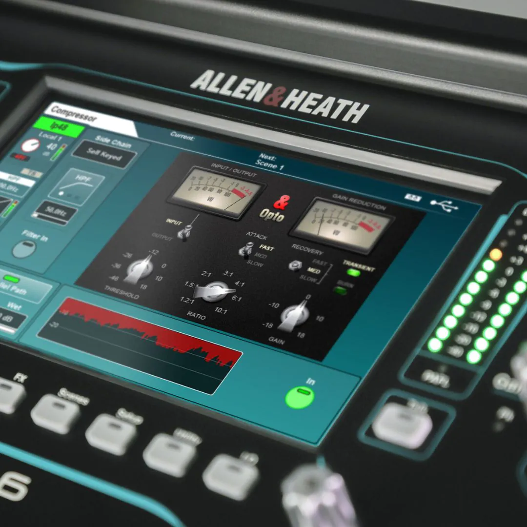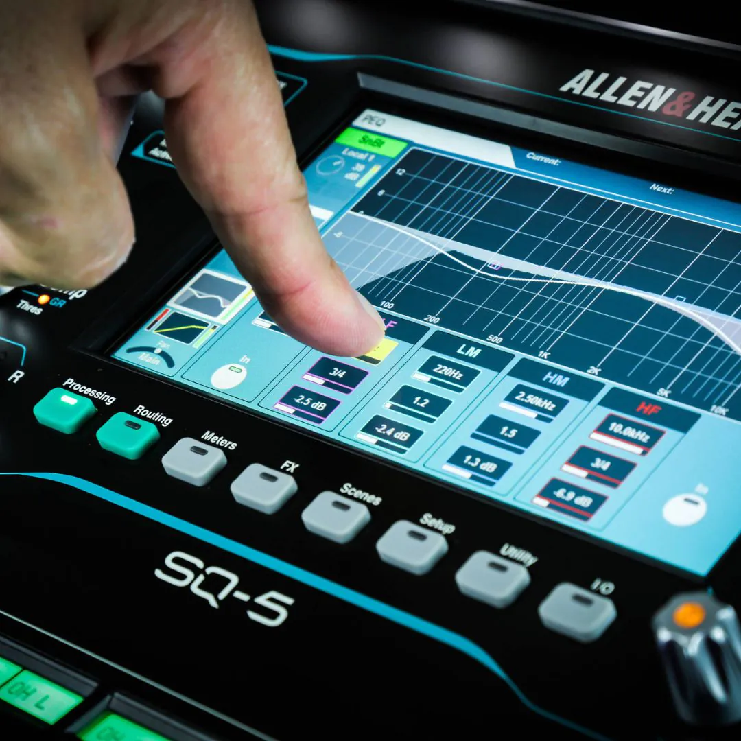 The Allen & Heath SQ-6 is built around the XCVI 96kHz FPGA processing engine, delivering high-resolution audio with extremely low latency. This powerful architecture preserves audio detail, clarity, and depth across complex mixes. It ensures accurate transient response for both live and recorded sound. The low-latency performance is ideal for in-ear monitoring and live performance applications. This engine provides consistent, professional audio quality in live, studio, and installation environments.
