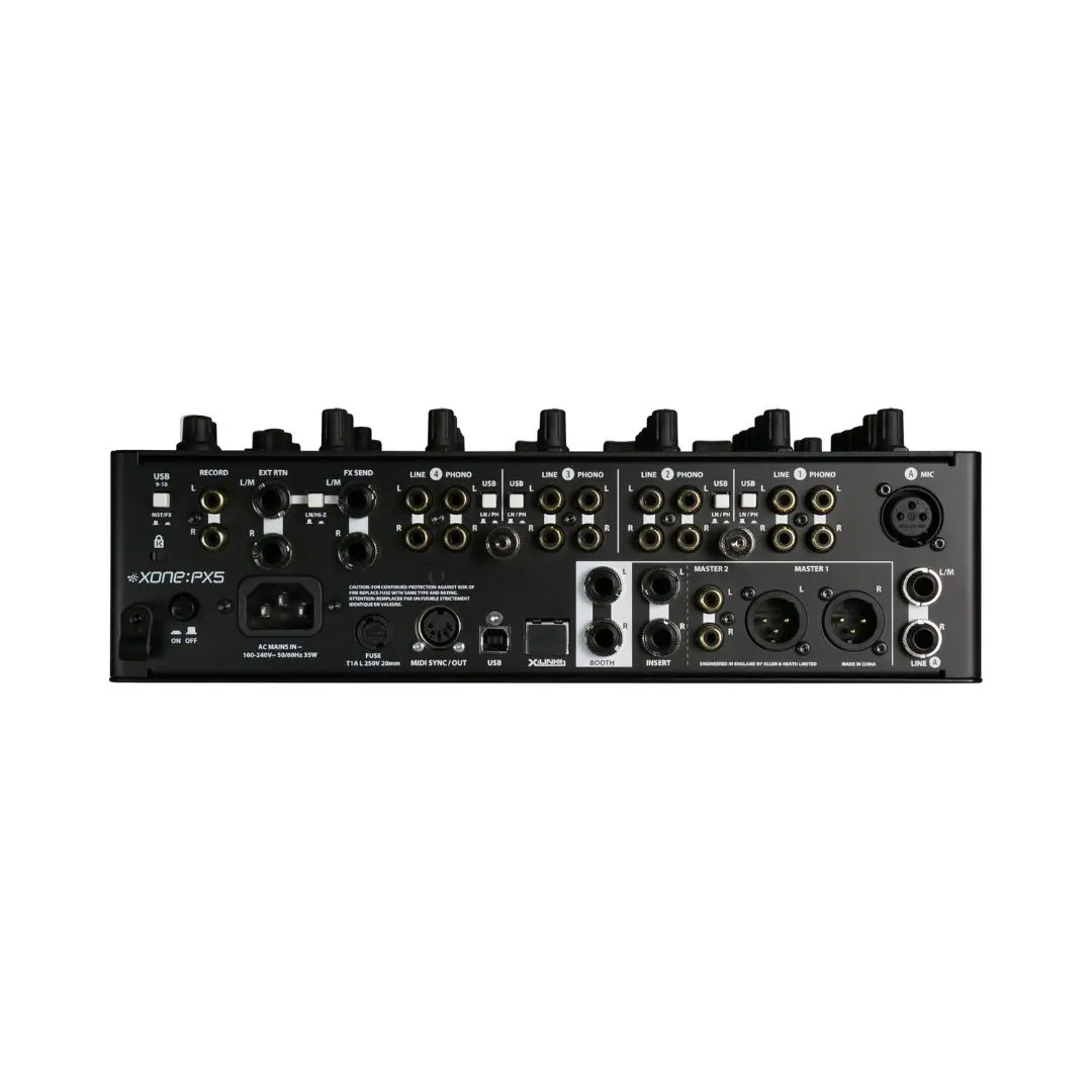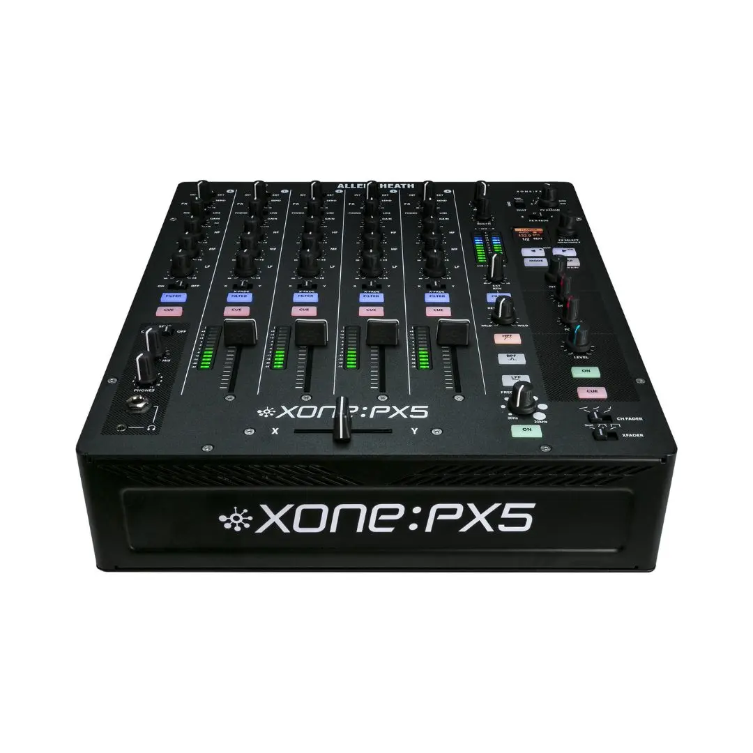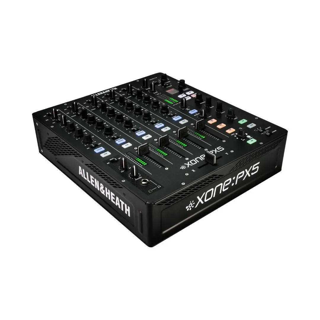 The Allen & Heath XONE:PX5 DJ mixer is a professional 4+1 channel analog mixer with an integrated 20-channel USB sound card, advanced XONE analog filtering, and built-in XONE:FX effects, making it ideal for club DJs, home studios, and live performance environments.