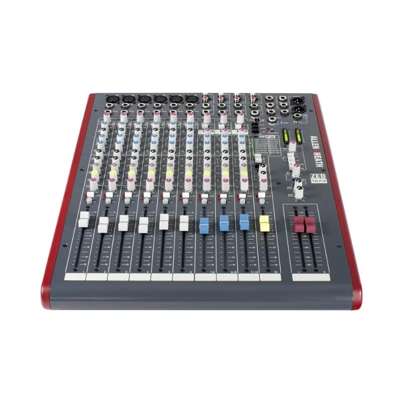 The Allen & Heath ZED-12FX analog mixer is a powerful 12-channel live sound and recording mixer featuring built-in digital effects, high-gain preamps, MusiQ EQ, and a USB audio interface—perfect for bands, venues, and project studios needing reliable professional audio performance.
