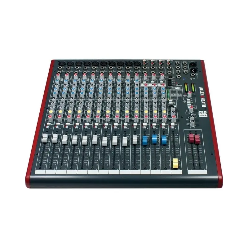 The Allen & Heath ZED-16FX analog mixer is a professional 16-channel live sound and recording mixer featuring built-in digital effects, MusiQ EQ, high-quality microphone preamps, and USB connectivity—ideal for bands, small venues, and project studios.