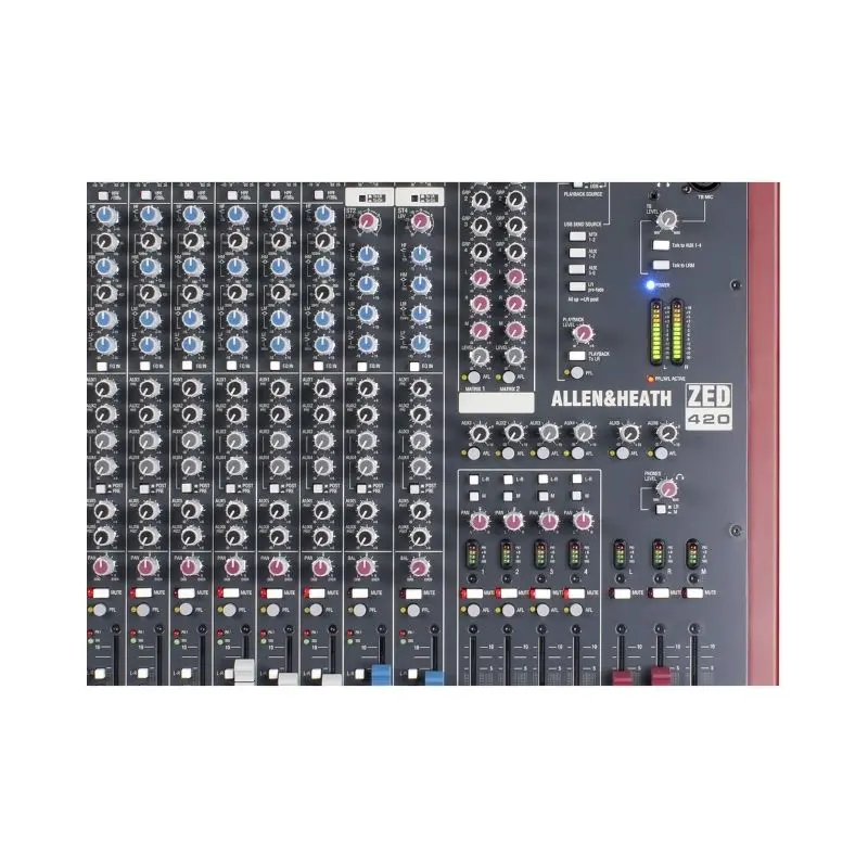 The Allen & Heath ZED-420 is a professional 20-channel analog mixing console designed for live sound, studio recording, and fixed installations. With premium preamps, GL-series EQ, advanced routing, and USB connectivity, it delivers exceptional audio control and reliability for demanding environments.