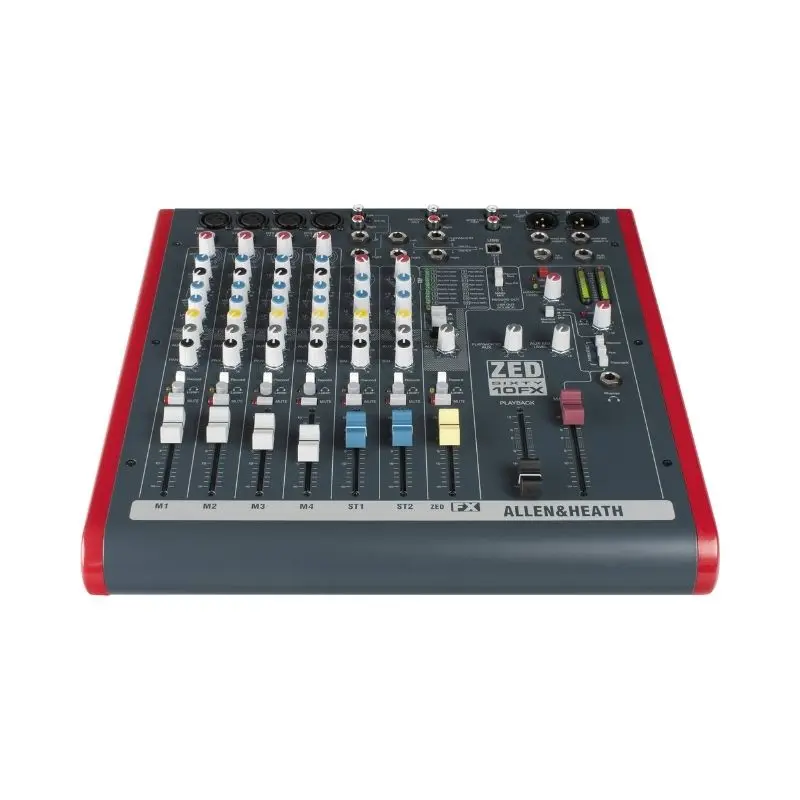 The Allen & Heath ZED60-10FX is a compact 10-input analog mixer with built-in effects and USB connectivity, designed for musicians, small bands, and home studios. Featuring Class-A Hi-Z guitar inputs, musical EQ, and studio-quality preamps, it delivers professional sound in a portable format.
