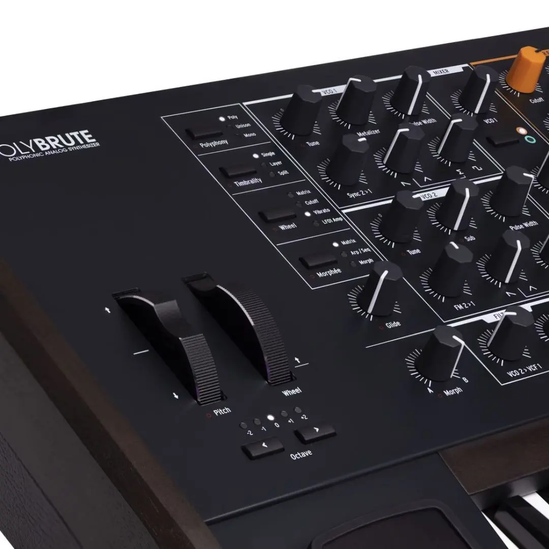 PolyBrute's morphing technology allows seamless transitions between two preset states (A and B) within a single sound, enabling intricate sound manipulation. Combined with the Morphée 3D touchpad, users can control morphing across the X, Y, and Z axes, offering dynamic and expressive sound shaping capabilities.