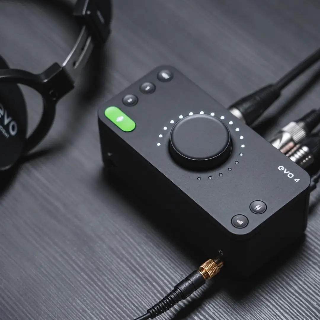 EVO 4 offers Smartgain automatic gain adjustment, intuitive controls for levels and muting, and audio loopback for seamless recording of computer and microphone inputs—ideal for podcasters and streamers.