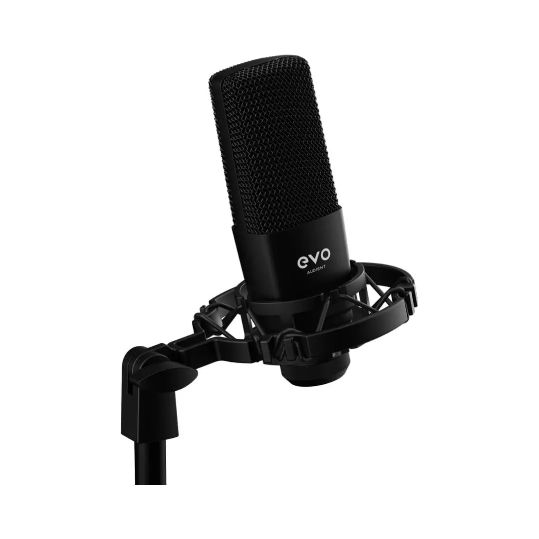 The Audient EVO Start Recording Bundle includes everything you need: EVO 4 audio interface, SR1 condenser microphone with shockmount, SR2000 headphones, and XLR cable—perfect for home studios and content creation.