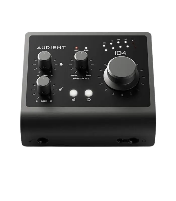 Every iD interface features the Audient Console Mic Preamp, the same discrete circuit design found in our renowned recording console the ASP8024-HE. Designed to deliver ultra- low noise and low distortion with a touch of classic analogue warmth, iD4’s Audient mic pre will give you the professional sound you deserve.