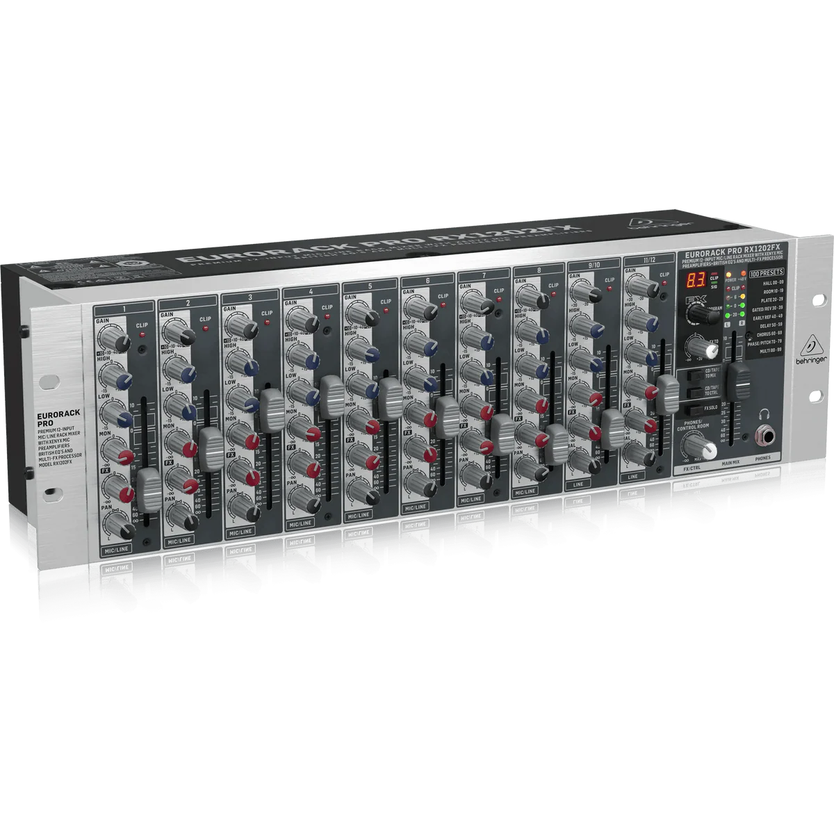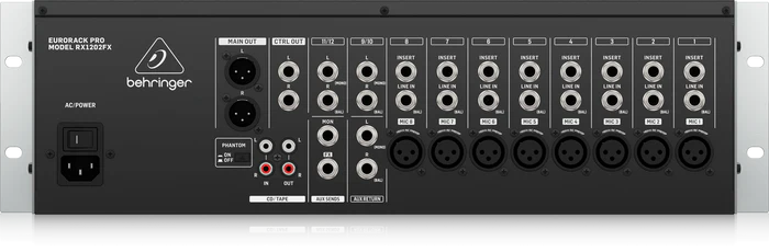 The Behringer RX1202FXV2 is a professional 12-input rack-mountable mic/line mixer designed for live sound, installations, and studio sub-mixing applications. Built with 8 studio-grade XENYX microphone preamps, this compact mixer delivers warm, low-noise performance with outstanding clarity—ideal for vocals, instruments, and spoken-word applications.