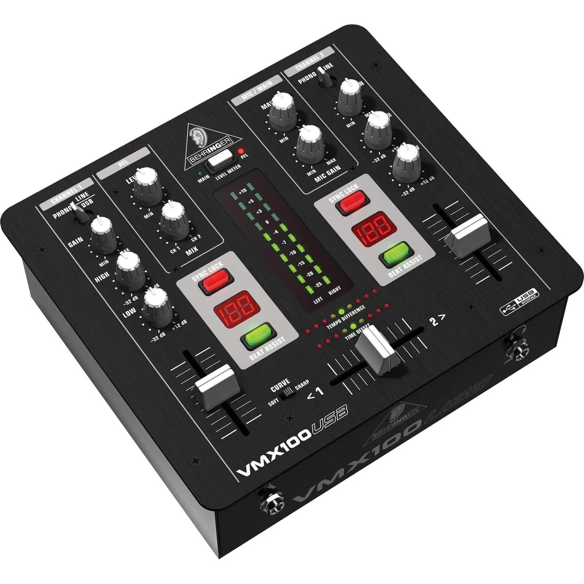 The Behringer VMX100USB is a professional 2-channel DJ mixer designed for DJs who want to integrate analog and digital sources effortlessly. With USB connectivity and built-in audio interface, it allows direct connection to your PC or Mac for instant playback and recording of digital files—no driver installation required. Mix vinyl, CDs, mp3 players, or digital tracks from your computer with ultimate flexibility.