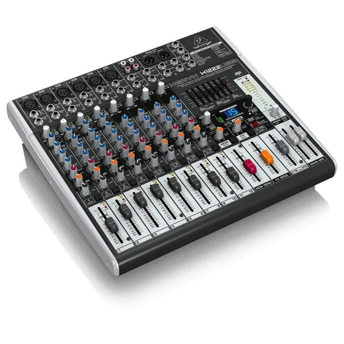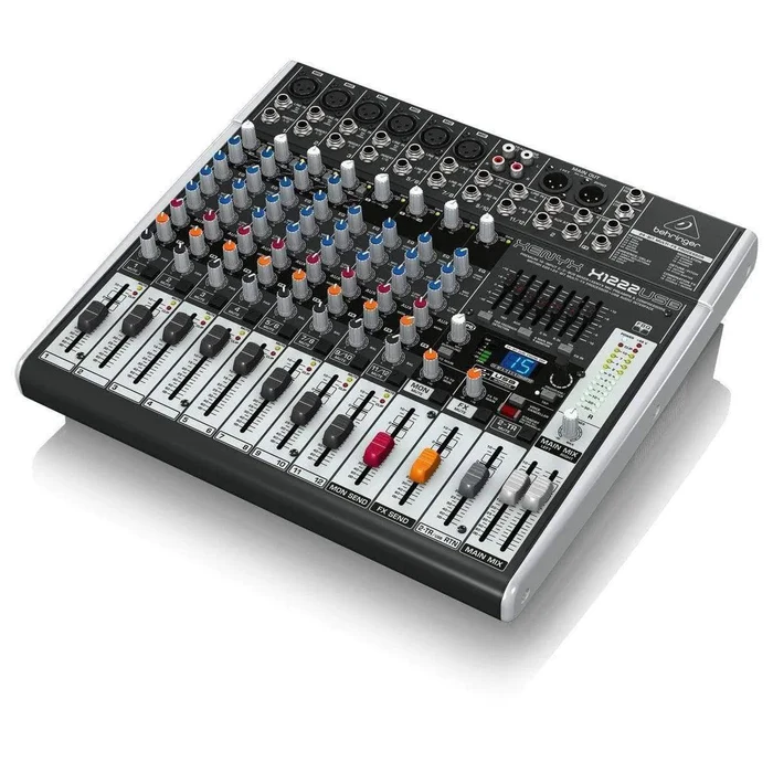 The Behringer Xenyx X1222USB is a powerful 16-input analog mixer designed for musicians, content creators, live sound engineers, and home-studio users who demand pristine audio quality and flexible control. Built around Behringer’s legendary XENYX microphone preamps, this mixer delivers ultra-clean sound with massive headroom, making it equally suitable for live performances, rehearsals, and professional recording.
