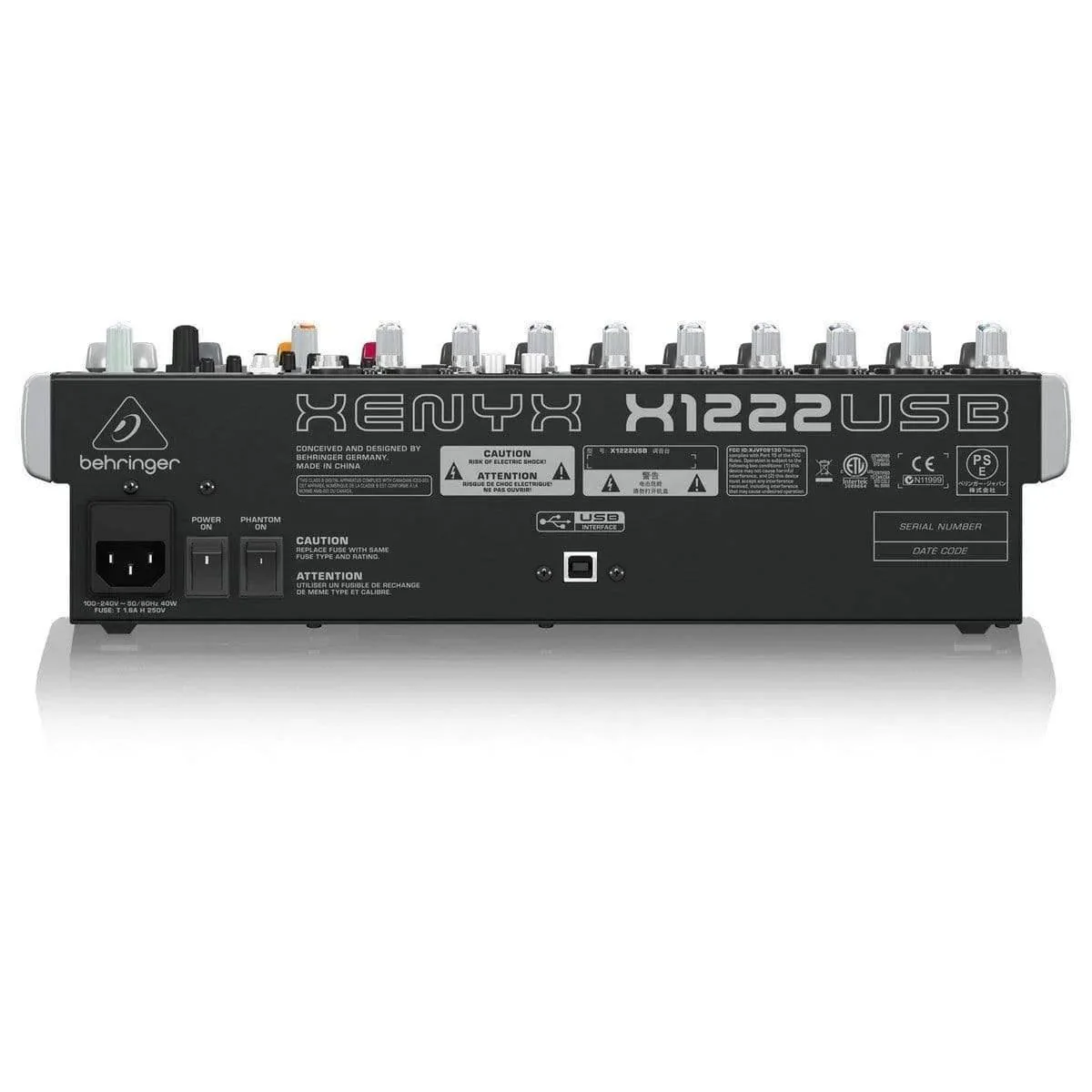 The Behringer Xenyx X1222USB is a 16-input analog mixer with XENYX mic preamps, compressors, effects, and USB connectivity—available now at djcompany.ae.