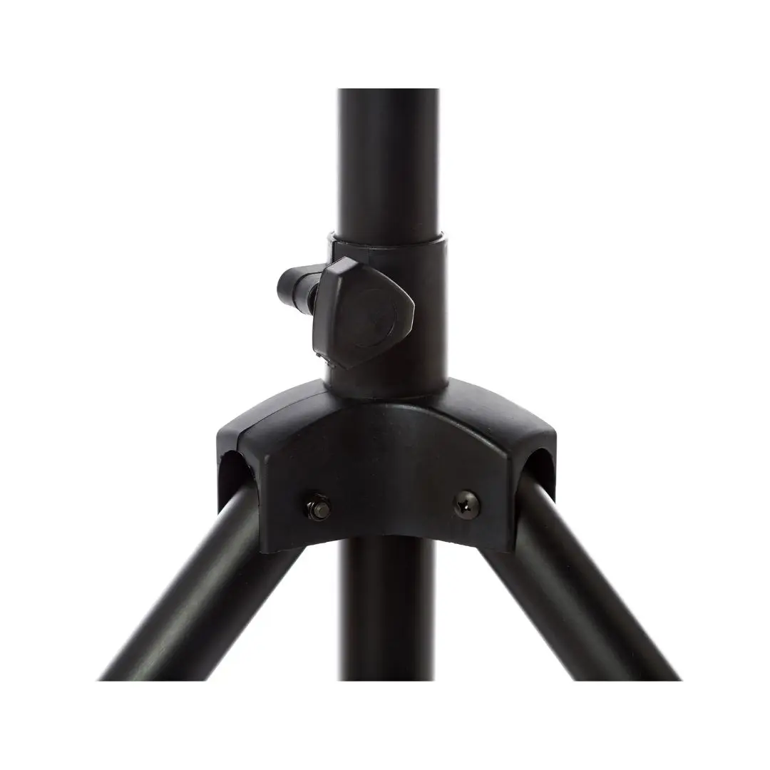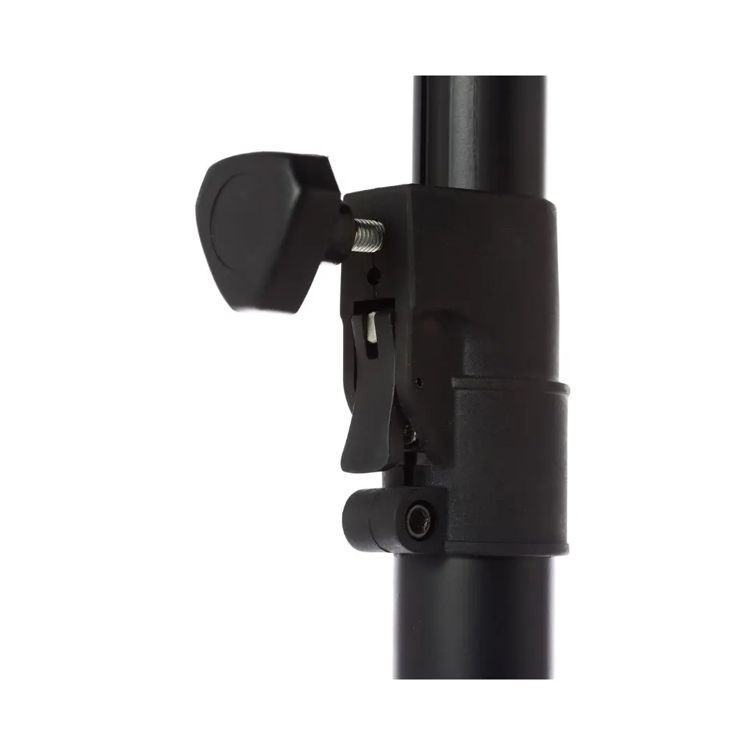The integrated pneumatic air-cushion mechanism ensures smooth and controlled height changes, preventing sudden drops and protecting your speakers during setup. Combined with automatic pushbuttons and a safety knob, it guarantees precise and secure positioning.