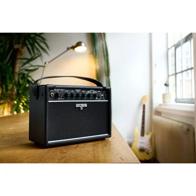 While its footprint is small, the Katana-Mini X sound is not. The multistage analog gain circuit features a sophisticated, detailed design that produces highly expressive tones with immersive depth and dimension, supported by a sturdy wood cabinet and custom 5″ speaker for a satisfying feel and rich low-end response. BOSS’s no-compromise Tube Logic design approach brings you full-bodied sounds for every genre, including searing high-gain solo sounds and tight, rhythmic metal tones, dripping with saturation and harmonic complexity.