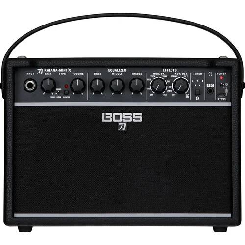 Katana-Mini X comes packed with powerful tools to take your music to the next level. The convenient rechargeable battery allows you to move to different rooms or outdoor locations without the hassle of AC power. Bluetooth support lets you jam with music from your mobile device, and use the amp as a portable speaker for casual music playback. The onboard guitar/bass tuner is always at the ready with a quick button press. And when you want to play quietly, you can plug in headphones and enjoy high-quality tones with built-in cabinet simulation and stereo effects.