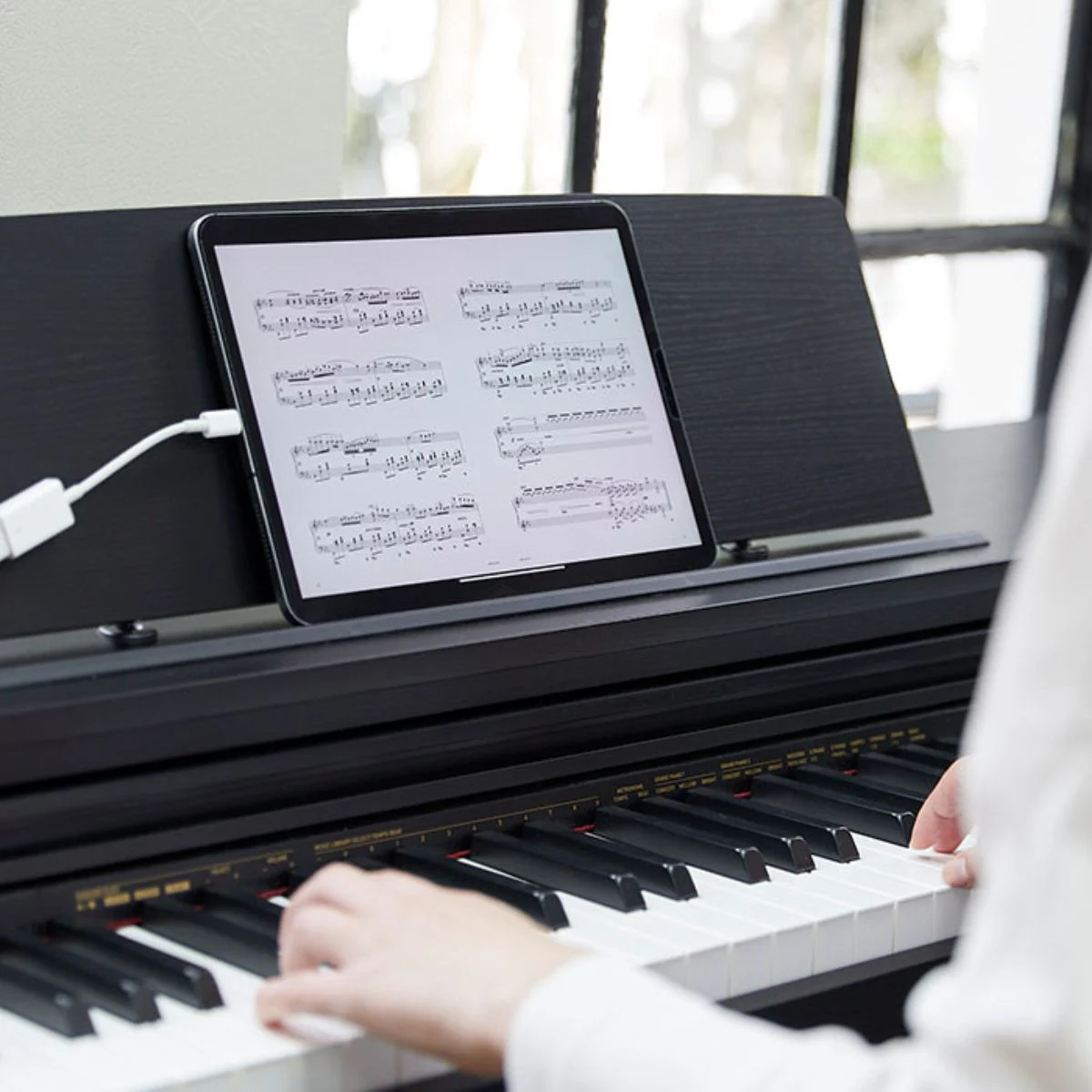 Tri-sensor Scaled Hammer Action Keyboard II offers a grand piano's unique timing. Simulated ebony and ivory keys provide a luxurious feel and optimal fingertip fit for extended play.