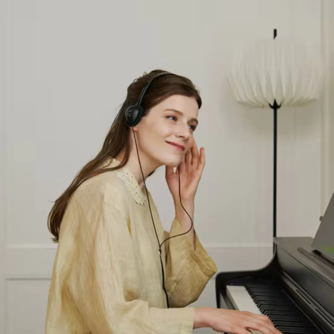 The integrated 2-channel speaker system with Volume Sync Equaliser ensures balanced, room-filling sound at any volume, while creative sound modes such as Hall Simulator, Reverb, and Surround allow you to tailor your audio experience. A traditional three-pedal console unit (damper with half-damper support, soft, and sostenuto) provides expressive control comparable to acoustic models.