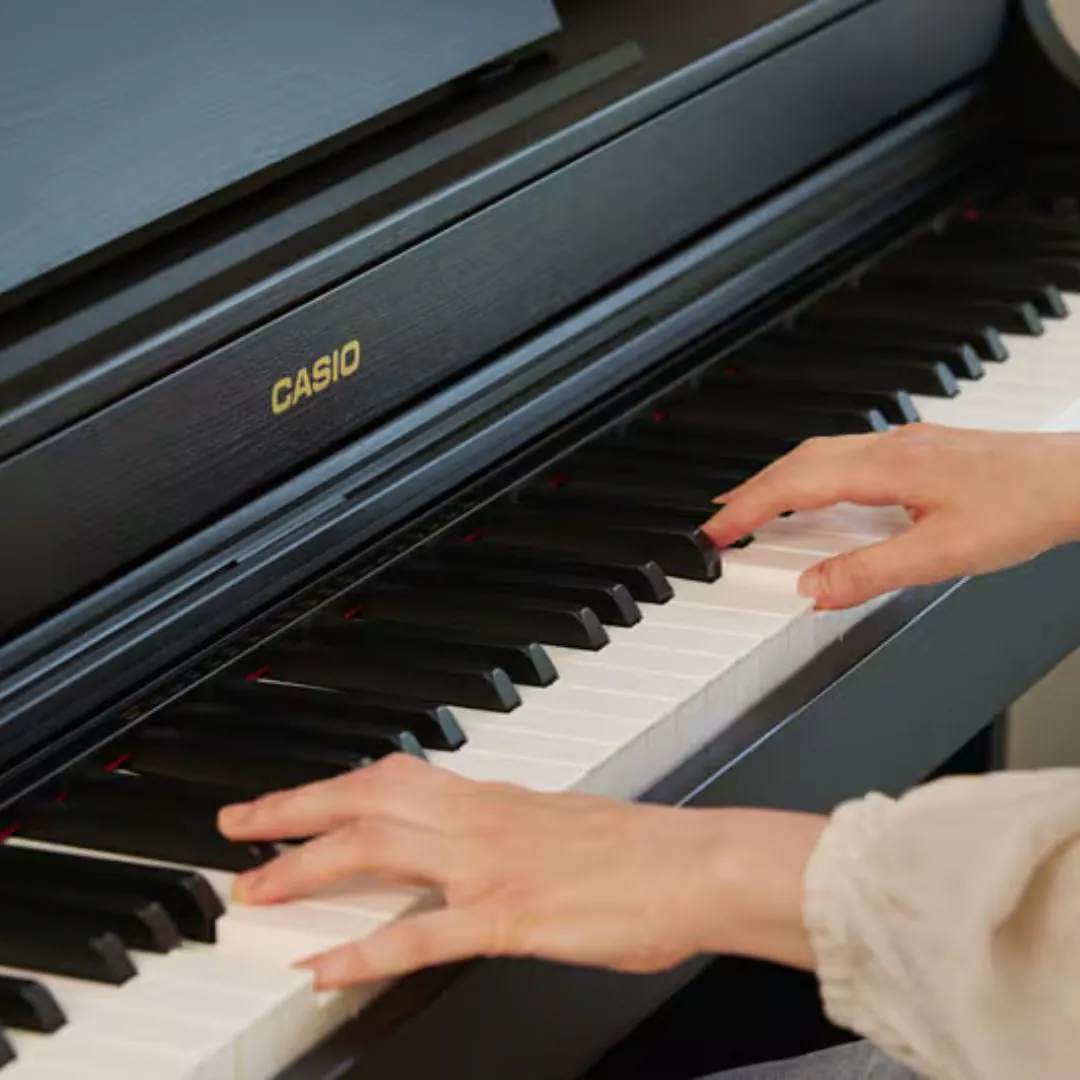 The Casio Celviano AP-300 Black features the advanced Multi-Dimensional Morphing AiR Sound Source, recreating expressive grand piano tones with detailed resonance and depth. This sound engine captures subtle nuances based on playing intensity, elevating your performance across styles from classical to contemporary.