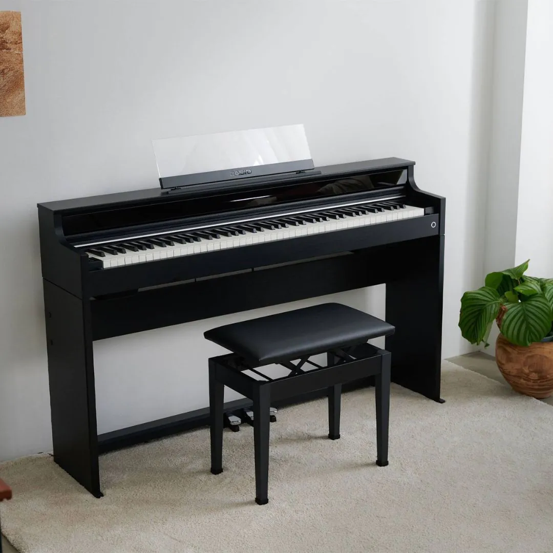 Finished in elegant black, the AP-S450 combines performance, style, and versatility. Its slim console cabinet fits comfortably in homes, studios, and apartments without compromising piano feel or sound quality. Whether you’re a beginner developing skills or an experienced player seeking expressive enjoyment, this piano offers a rich and inspiring playing experience.