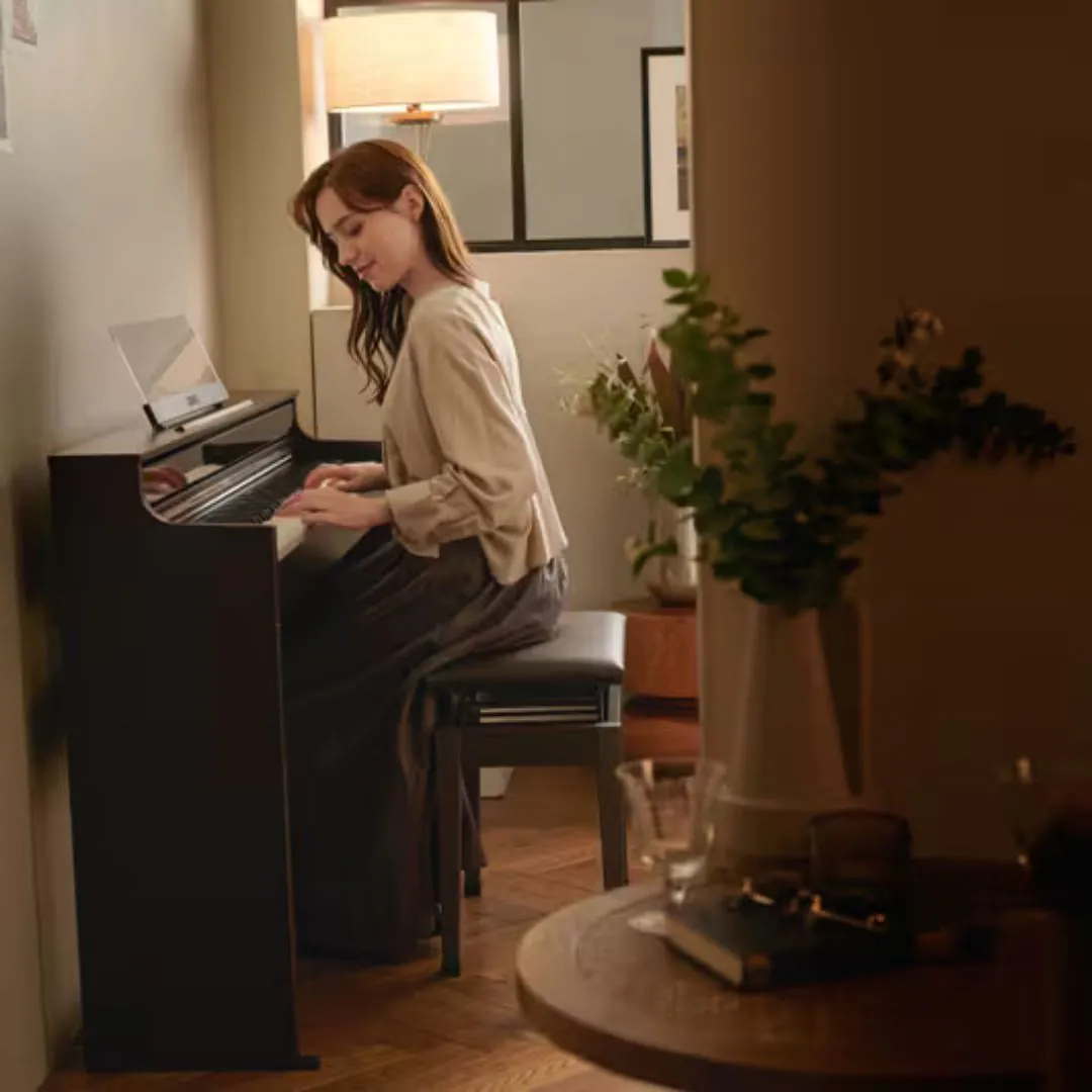 Its Smart Hybrid Hammer Action Keyboard (Celviano Edition) uses a hybrid spruce-and-resin key construction to provide authentic touch response and weighted feel almost indistinguishable from an acoustic instrument. Each of the 88 fully weighted keys responds dynamically across soft and powerful playing, making it suitable for beginners and experienced musicians alike.