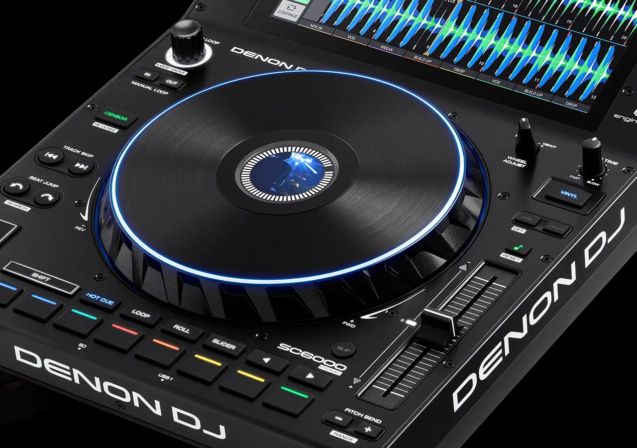 The Denon DJ SC6000 PRIME is the most advanced, standalone digital media player featuring the powerful Engine OS, a 10.1-inch touchscreen, dual-layer capability, and an 8.5-inch jog-wheel. Supports Wi-Fi streaming and 24-bit, 96kHz digital audio for professional club use.