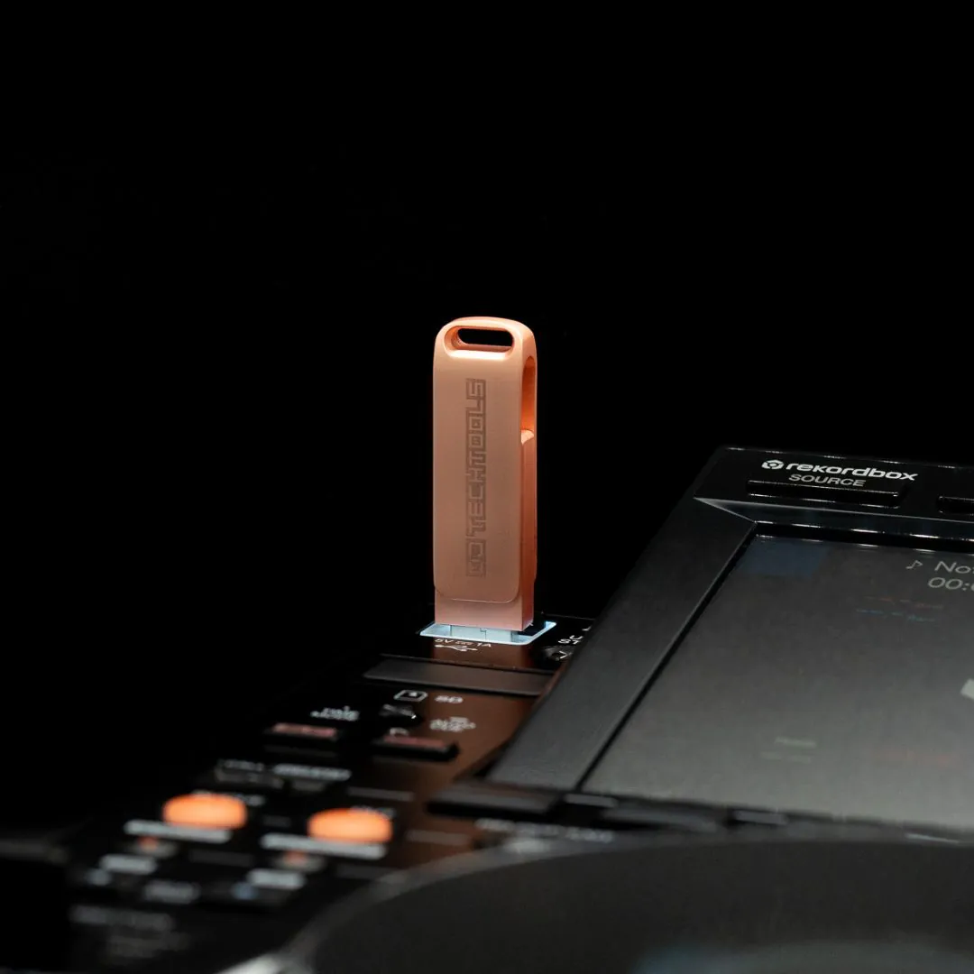 Featuring a rugged metal housing with a rose gold finish, this USB drive offers both professional aesthetics and rugged durability. It stands up well to frequent gig use, travel, and everyday wear while enhancing your setup’s visual appeal.