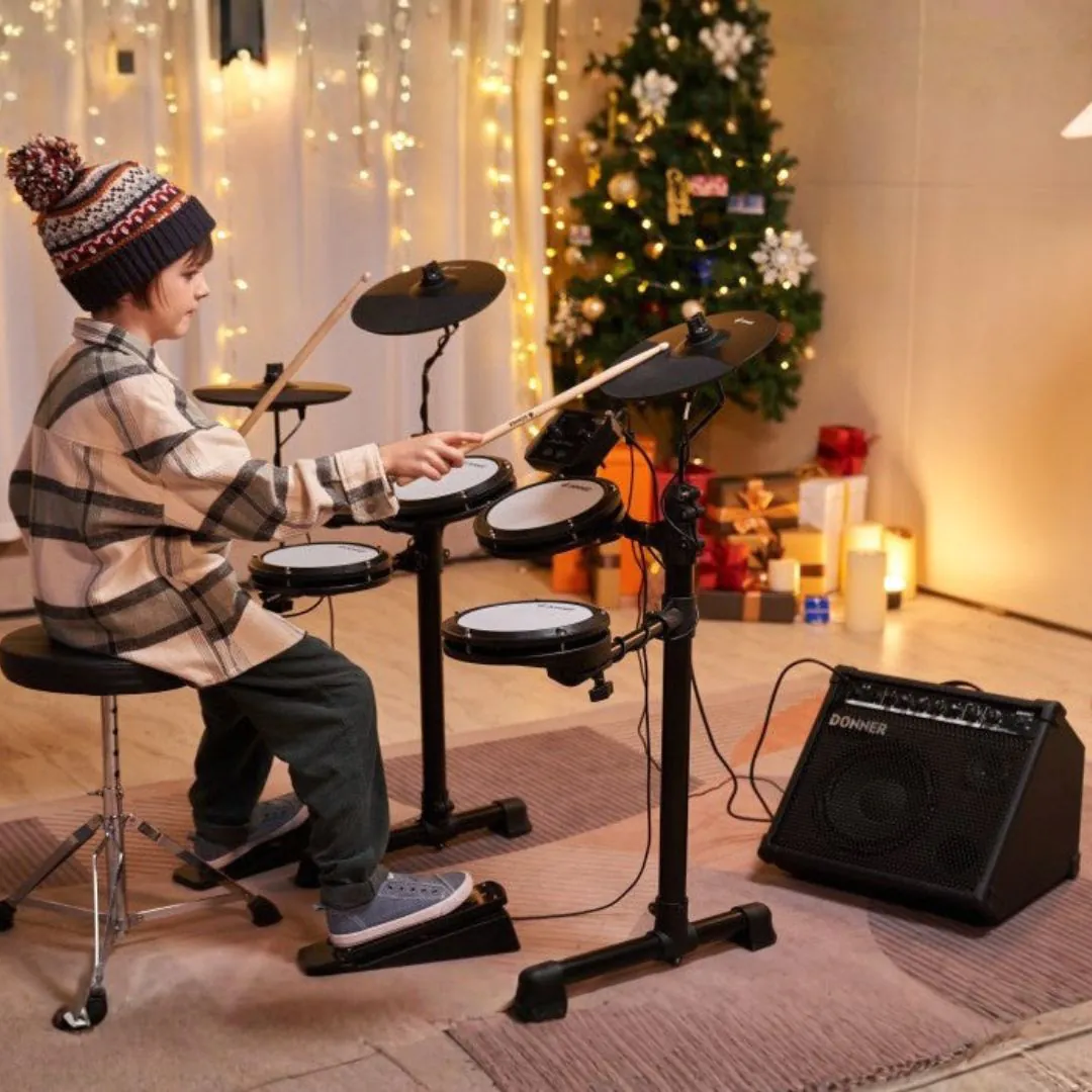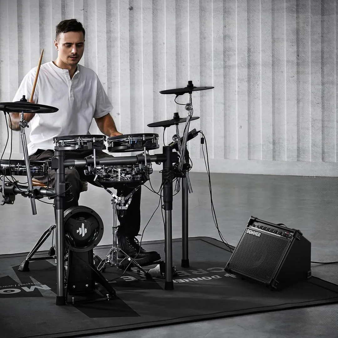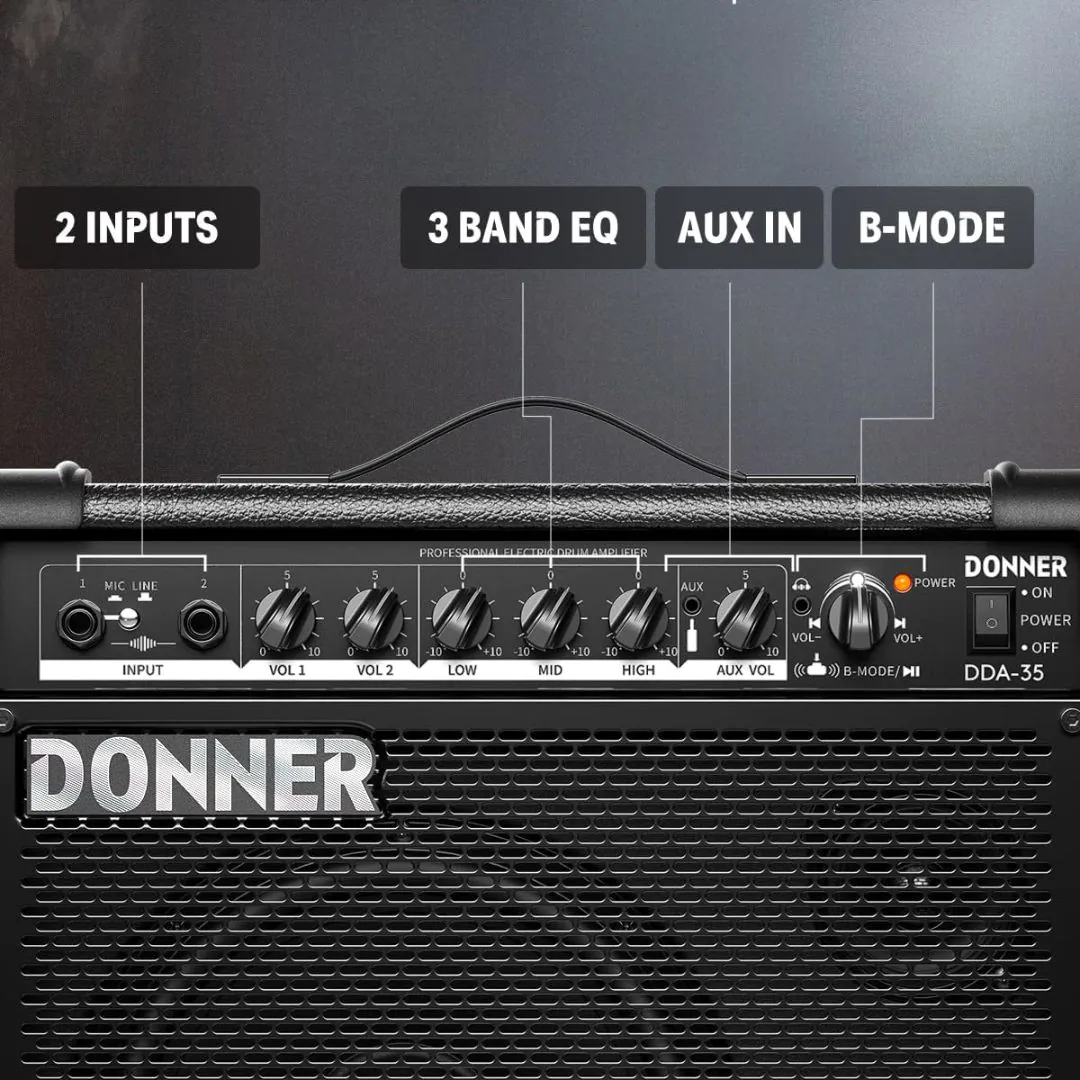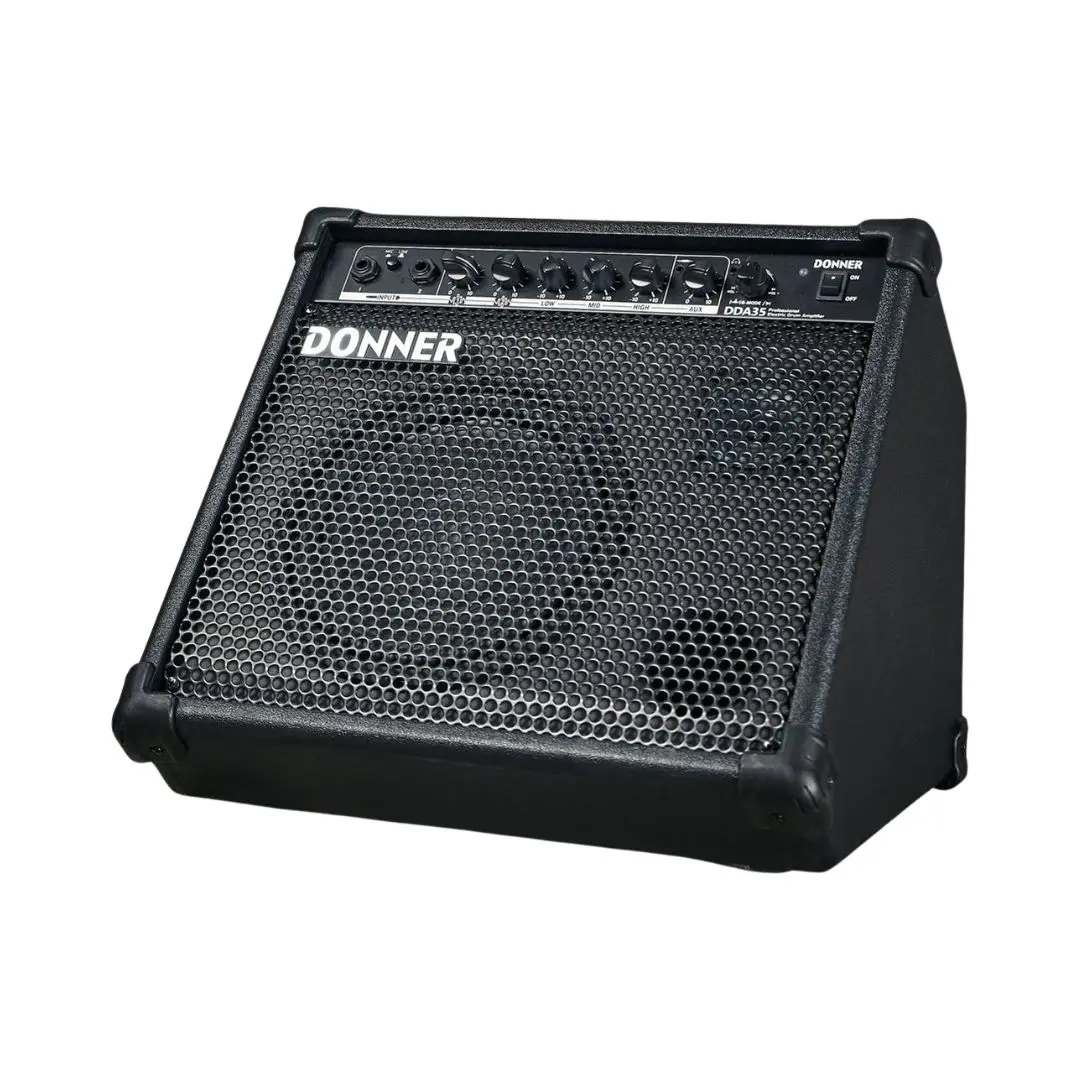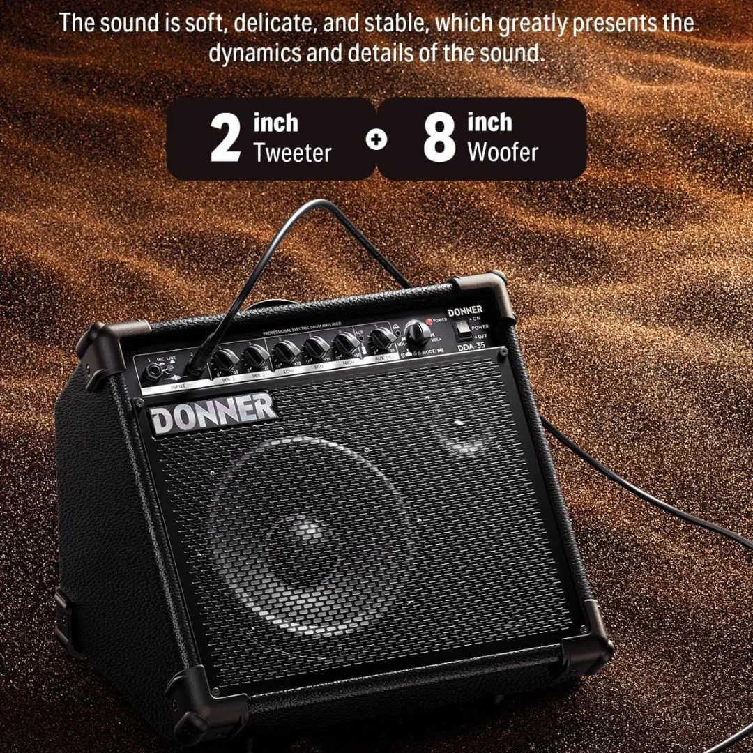 The Donner DDA-35 35-Watt Electric Drum Amplifier delivers clear, dynamic sound performance tailored specifically for electronic drum kits and multi-instrument use. Powered by a solid-state 35W amplifier, it produces punchy lows, detailed mids, and crisp highs, ensuring accurate sound reproduction during practice or performance. The dual-speaker configuration combines an 8-inch woofer with a 2.5-inch tweeter, offering excellent low-frequency depth and high-frequency clarity for realistic drum tones.