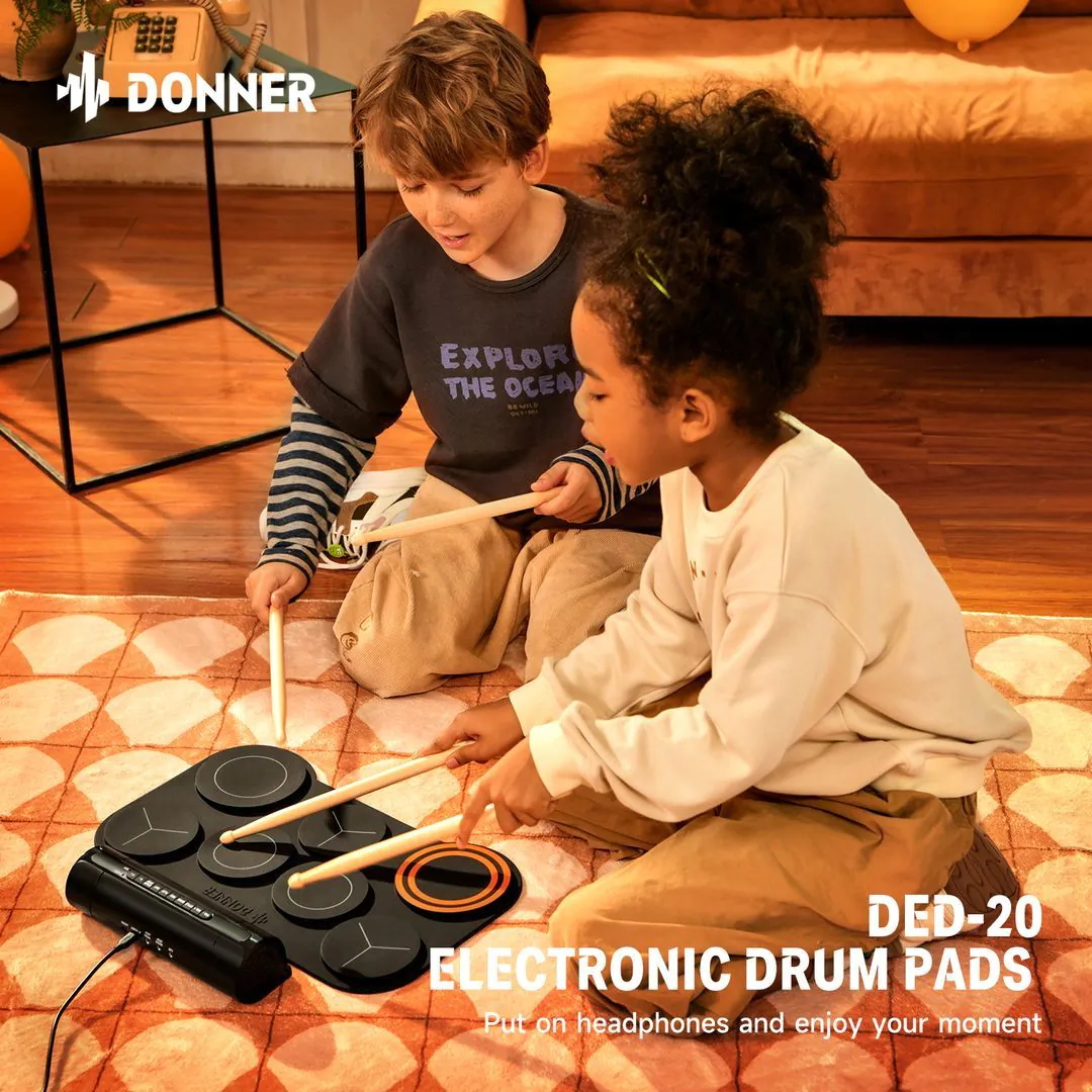 The Donner DED-20 Roll Up Electronic Drum Pad offers portable, silent, and fun drum practice with multiple sounds and rhythms—perfect for beginners and travel use. Available now at djcompany.ae.