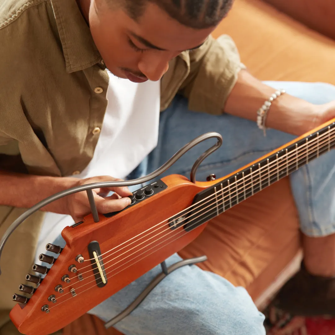 Designed for creative freedom, the HUSH-I allows you to compose, practice, and perform wherever inspiration strikes. Its headless design, responsive neck, and professional-grade electronics ensure smooth playability and tuning stability. Whether you are a beginner exploring your first riffs or an experienced musician performing on stage, this travel guitar adapts effortlessly to your needs.