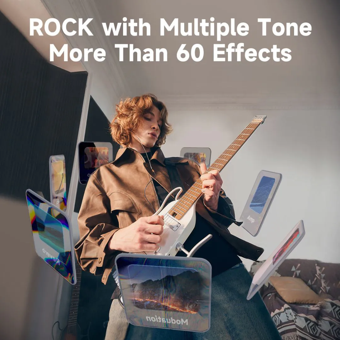 The sleek matte white finish and headless design give the Donner HUSH-X PRO a modern, minimalist look. Its balanced weight distribution improves playing comfort, while the stainless steel frets and roasted maple fingerboard ensure long-lasting performance and precision.