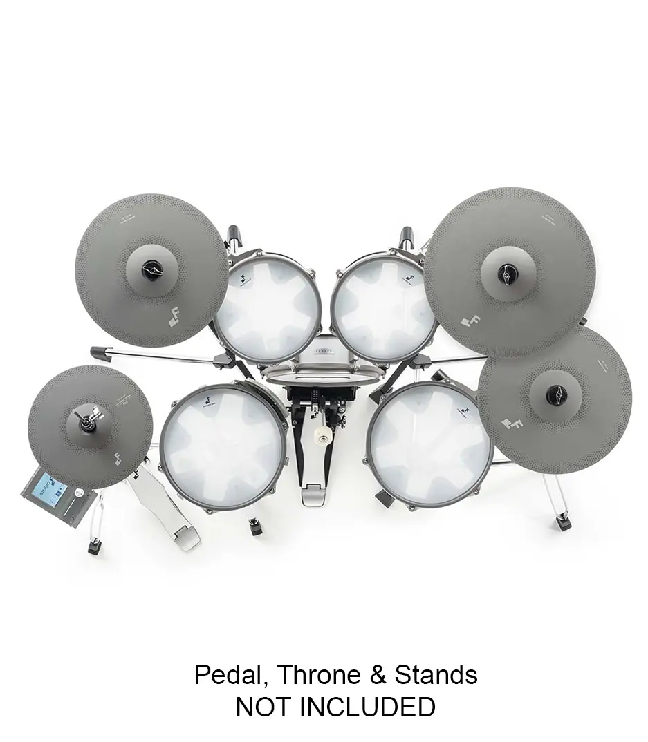 At the heart of the kit is the EFD-3 sound module, featuring 16 preset kits, 34 user kits, and 50 high-quality instruments. Extensive connectivity includes line and headphone outputs, aux input, USB audio/MIDI, Bluetooth audio and MIDI, and a 5-pin MIDI DIN output—making it ideal for practice, recording, and live performance setups.