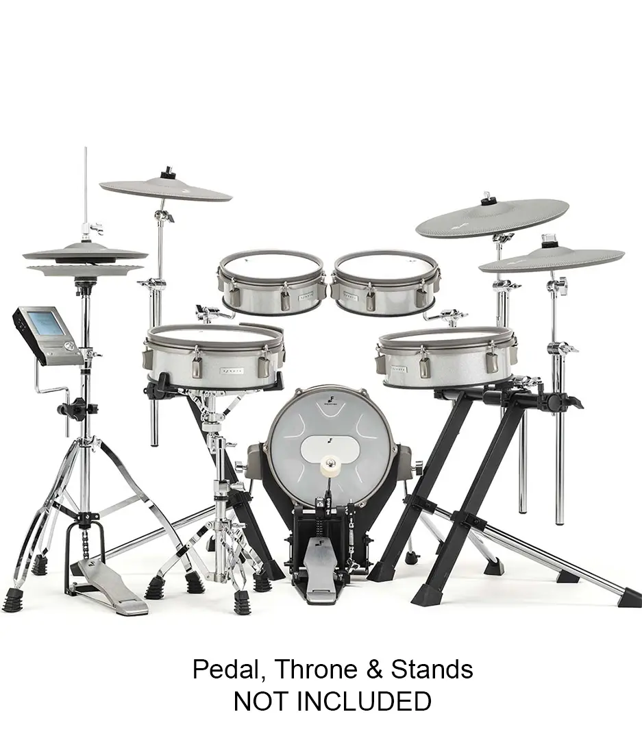 This complete configuration includes a 12″ three-zone mesh snare, two 10″ dual-zone rack toms, a 12″ dual-zone floor tom, an 8″ kick pad, and four expressive cymbals—including a 12″ three-zone hi-hat, two 14″ crash cymbals, and a 16″ three-zone ride cymbal, all with choke functionality. The sleek White Sparkle finish and acoustic-style shells give the kit a premium visual presence suitable for home, studio, or stage.