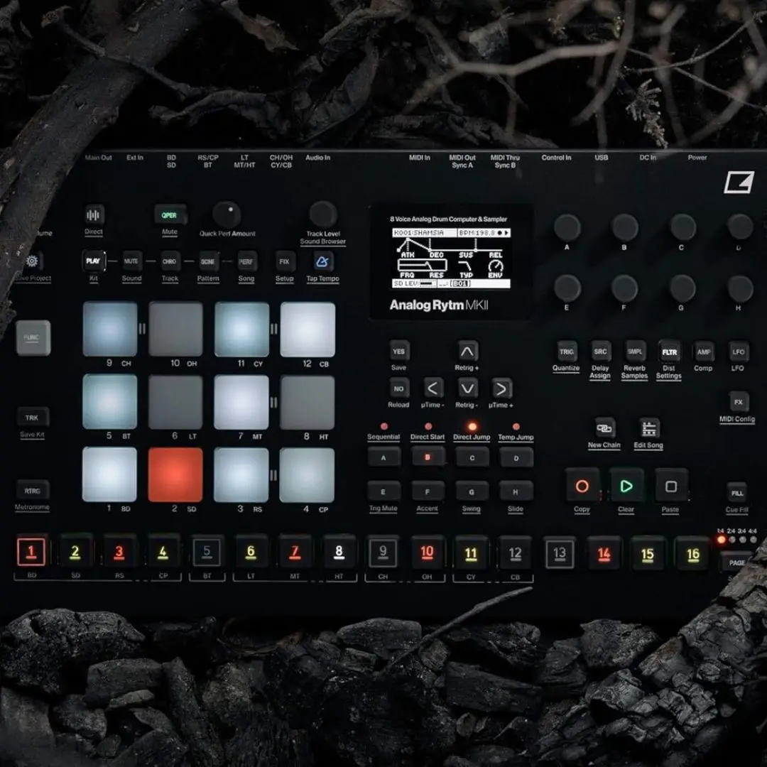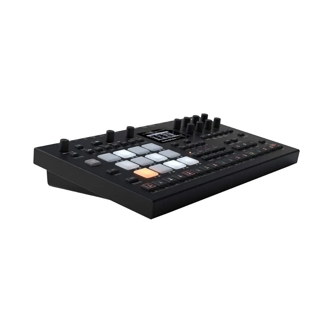 Twelve velocity-sensitive, backlit drum pads provide an intuitive way to create beats with expressive dynamics. The advanced step sequencer enables real-time recording, parameter locking, and per-step sound manipulation, perfect for live performances and intricate programming.