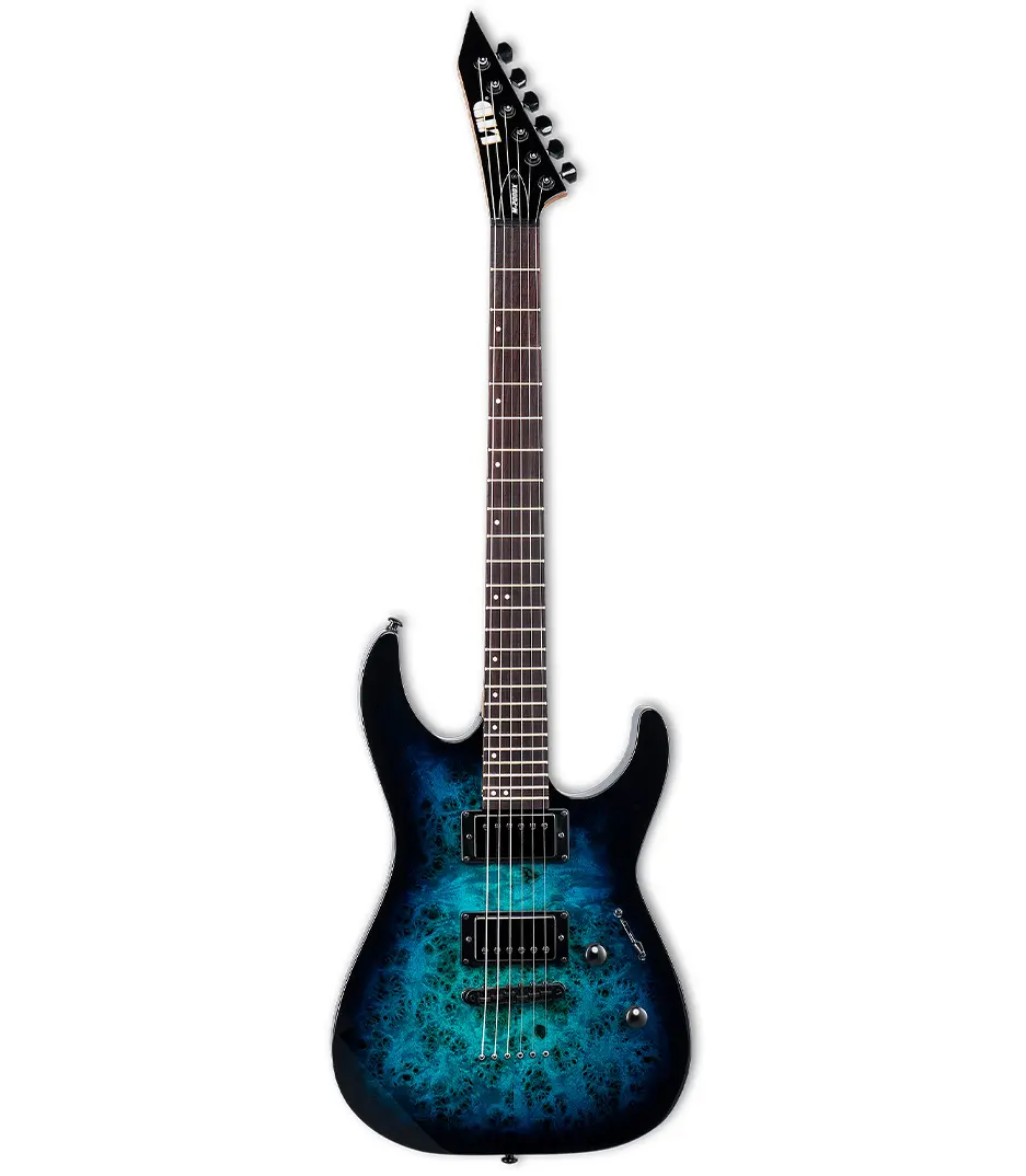 The M-200DX features a contoured poplar body with a double-cut ESP M-series shape for easy upper-fret access. Its burl poplar top adds premium visual appeal. The lightweight design improves comfort during long sessions. Ideal for aggressive and technical playing styles. Built for performance and durability.
