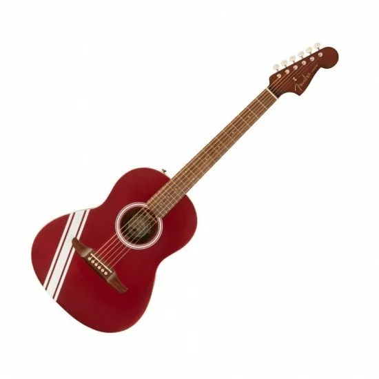 Built with a resonant spruce top paired with mahogany back and sides, the Sonoran Mini produces clear highs, warm mids, and a surprisingly full low-end response. Its 24.1″ scale length offers comfortable playability for younger musicians, beginners, or seasoned players seeking a couch-friendly or travel-ready guitar. The iconic 6-in-line Strat® headstock reinforces Fender’s electric-inspired heritage, while the bold Candy Apple Red finish with competition racing stripe ensures unmistakable stage presence.