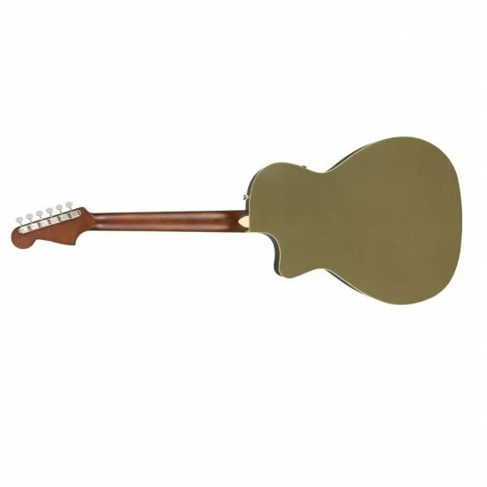Its solid spruce top, finished in a striking Olive Satin, produces crisp projection and clarity, while the mahogany back and sides add warmth and depth. Visually, the Newporter Player makes a bold statement with its matching painted 6-in-line Fender headstock, elegant crème binding, and modern Fender styling that breaks away from traditional acoustic designs.