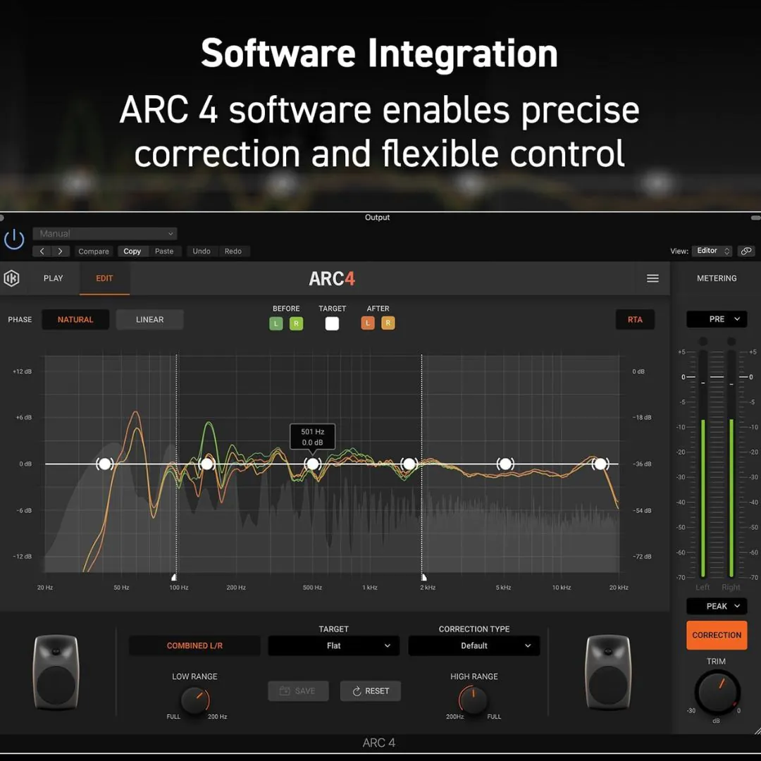 ARC Studio operates with ultra-low latency and high-resolution 24-bit/192kHz processing, ensuring pristine audio quality without compromising performance. With multiple correction presets and adjustable target curves, users can fine-tune their monitoring experience based on personal preference or industry standards.