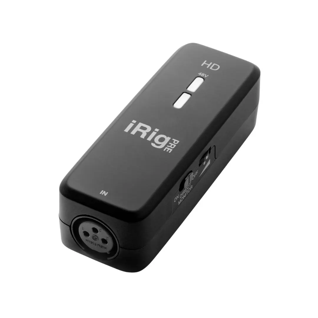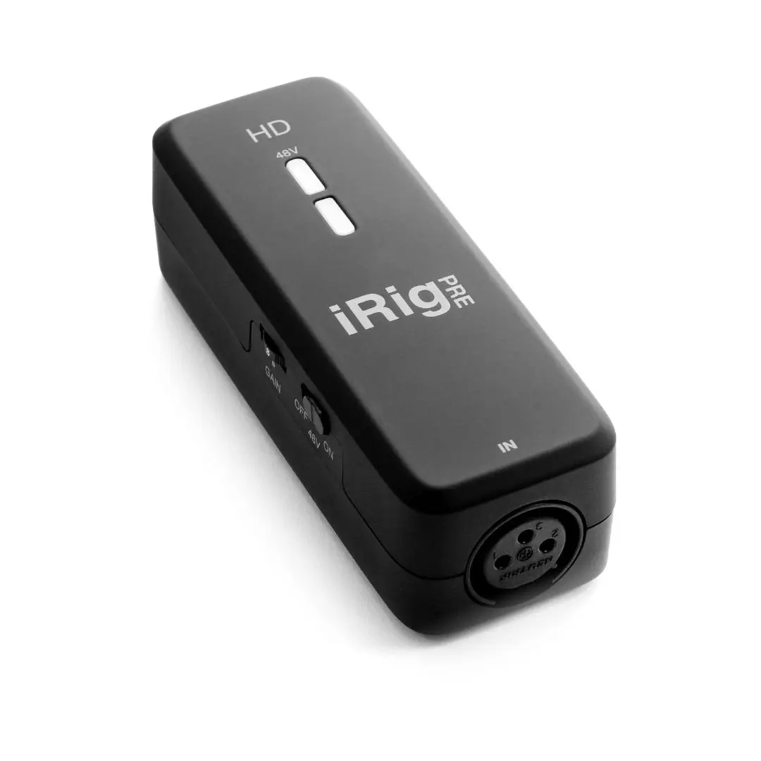 The IK Multimedia iRig Pre HD is a compact high-definition microphone audio interface designed for creators who need professional recording quality on mobile devices and computers. Featuring a Class-A microphone preamp, 24-bit/96kHz audio conversion, and +48V phantom power, it allows users to connect professional XLR microphones to smartphones, tablets, and laptops for podcasts, music recording, streaming, and video production.Home