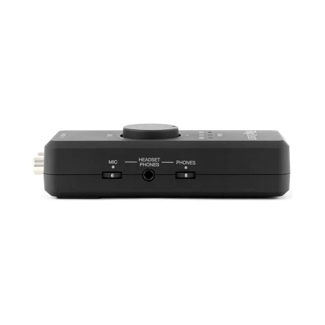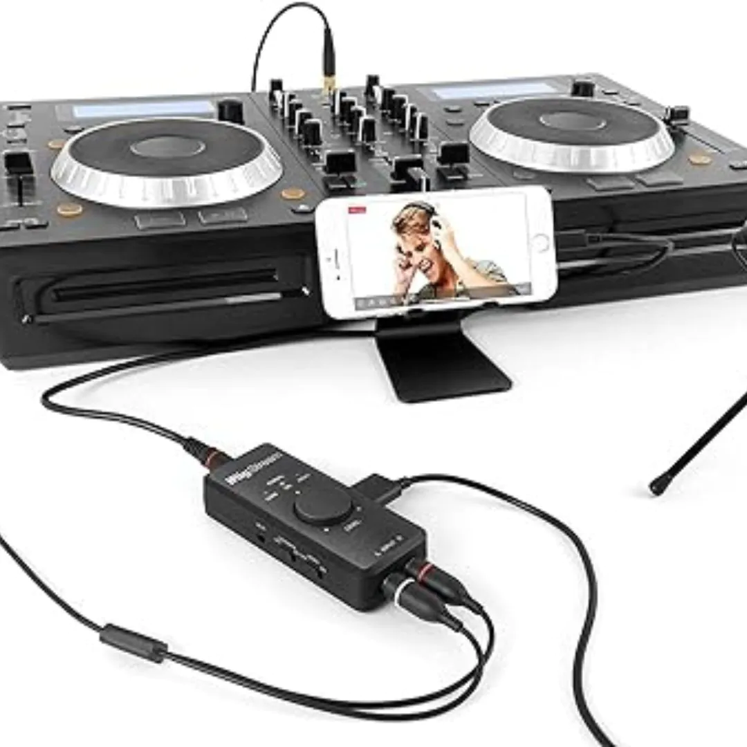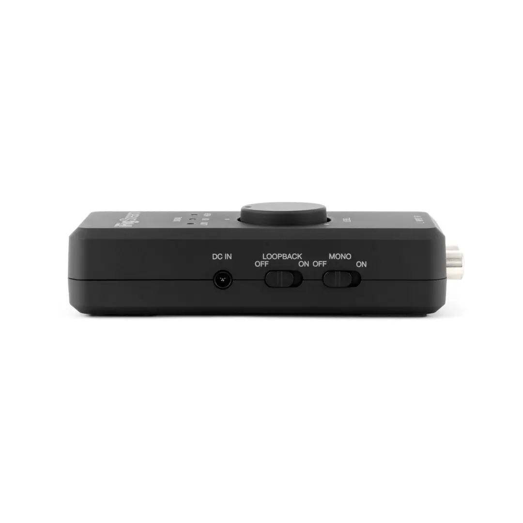 For monitoring, the interface includes a 3.5 mm headphone output with adjustable level control, enabling users to hear their audio signal in real time without latency. A convenient mono/stereo switch ensures compatibility with social media platforms that require mono audio for streaming.