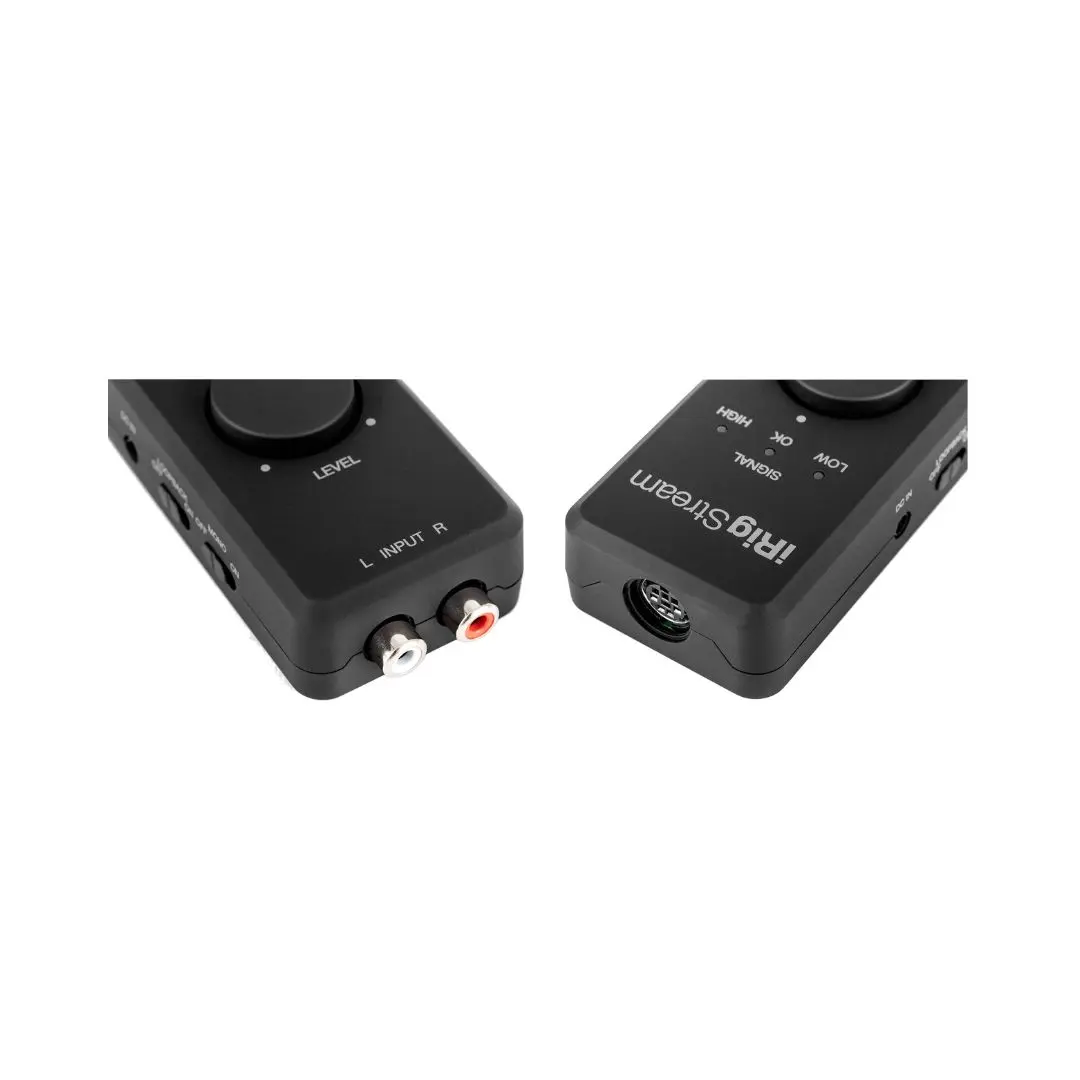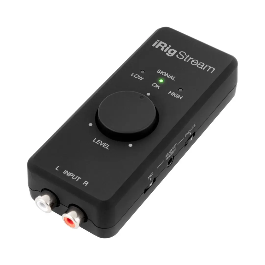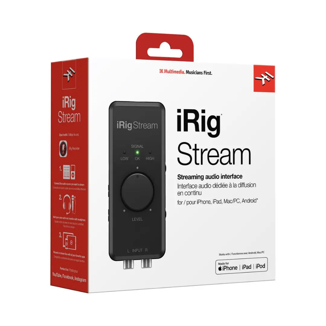 The IK Multimedia iRig Stream is a compact stereo audio interface designed for livestreaming and content creation on smartphones, tablets, and computers. With 24-bit / 48 kHz audio quality, RCA stereo inputs, loopback mixing, and real-time headphone monitoring, it allows musicians, DJs, and creators to connect mixers, instruments, or audio players directly to their device for high-quality streaming and recording.Home
