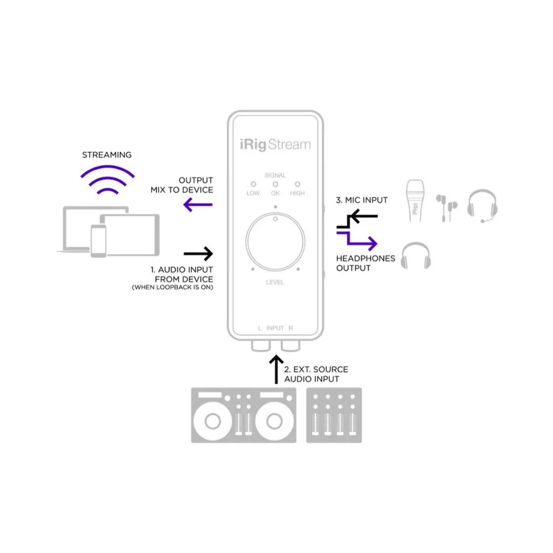 The IK Multimedia iRig Stream is a portable audio interface built specifically for musicians, DJs, podcasters, and content creators who want to deliver professional audio quality when livestreaming or recording on mobile devices and computers. Designed for simplicity and versatility, the interface allows users to connect mixers, keyboards, DJ controllers, or other audio equipment directly to smartphones, tablets, or laptops for seamless streaming.
