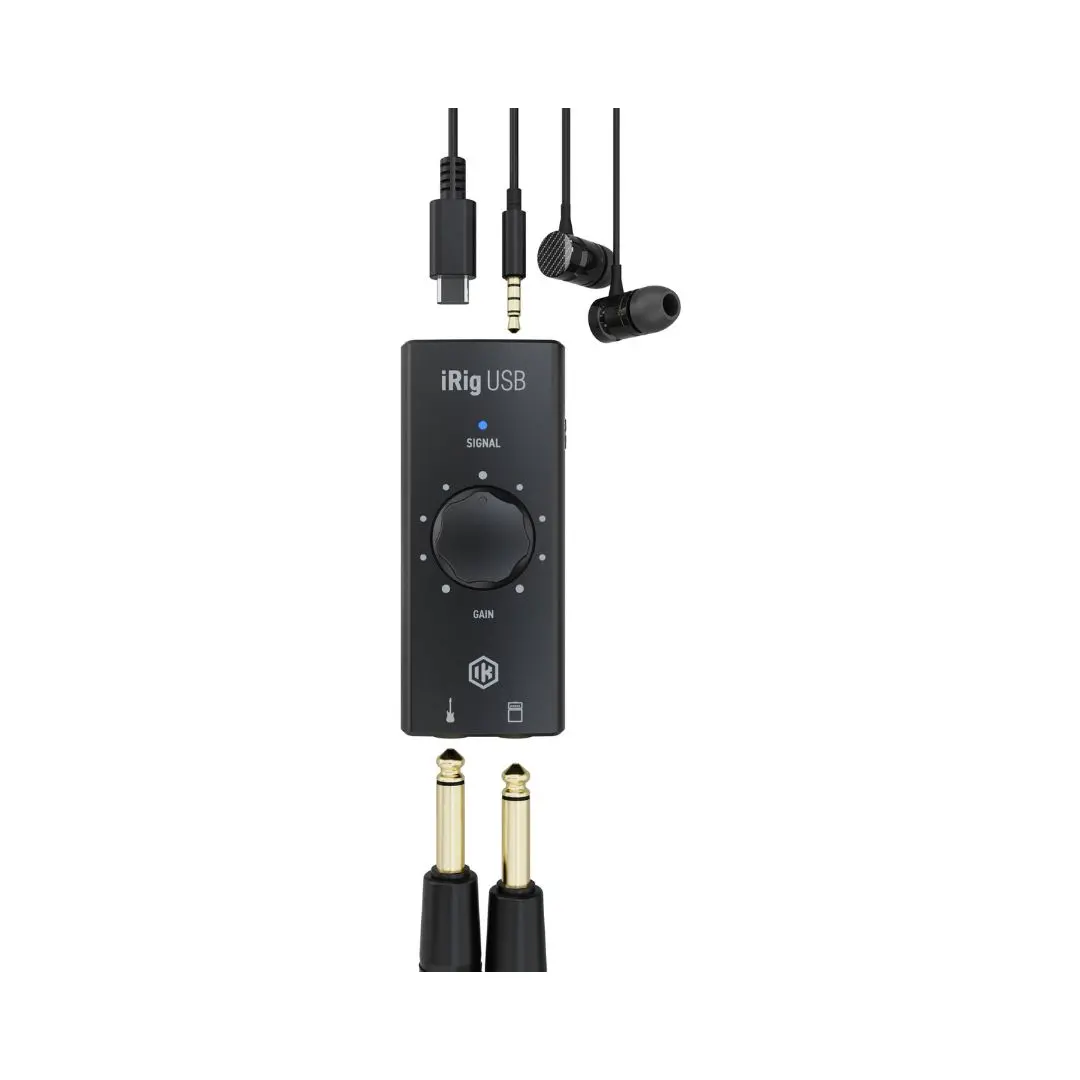 The IK Multimedia iRig USB is a compact and powerful guitar audio interface designed for musicians who want to play, practice, and record directly from their mobile devices or computers. Built with portability and simplicity in mind, this interface allows guitarists and bass players to connect their instrument to a Mac, PC, iPad, iPhone, or Android device using a USB-C connection, making it an ideal solution for mobile music production and practice setups.