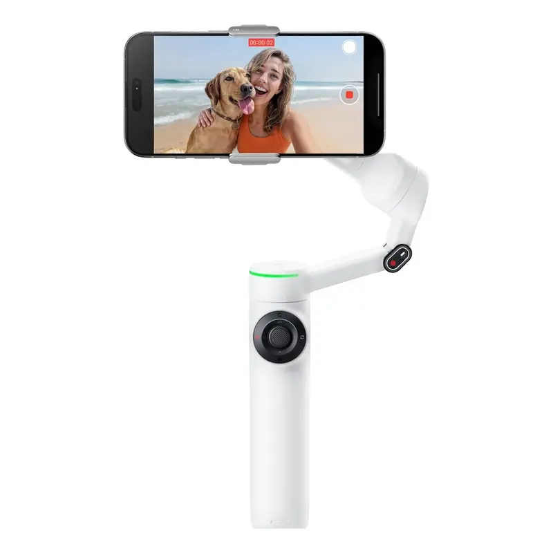 The sleek Summit White design combines style with functionality. Its foldable and portable structure, along with a built-in tripod and selfie stick, allows creators to set up shots anywhere. Quick switching between portrait and landscape modes, gesture control, and automated shooting modes makes filming effortless.