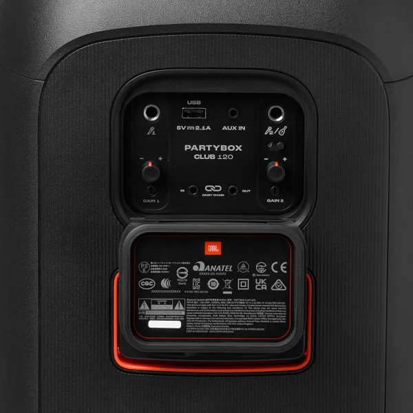 The JBL PartyBox Club 120 is a powerful 160W portable party speaker with a swappable 12-hour battery, IPX4 splashproof build, and a futuristic, customizable lightshow. Featuring AI Sound Boost and Auracast™ multi-speaker pairing, it delivers dynamic, room-filling JBL Pro Sound for any indoor or outdoor event.