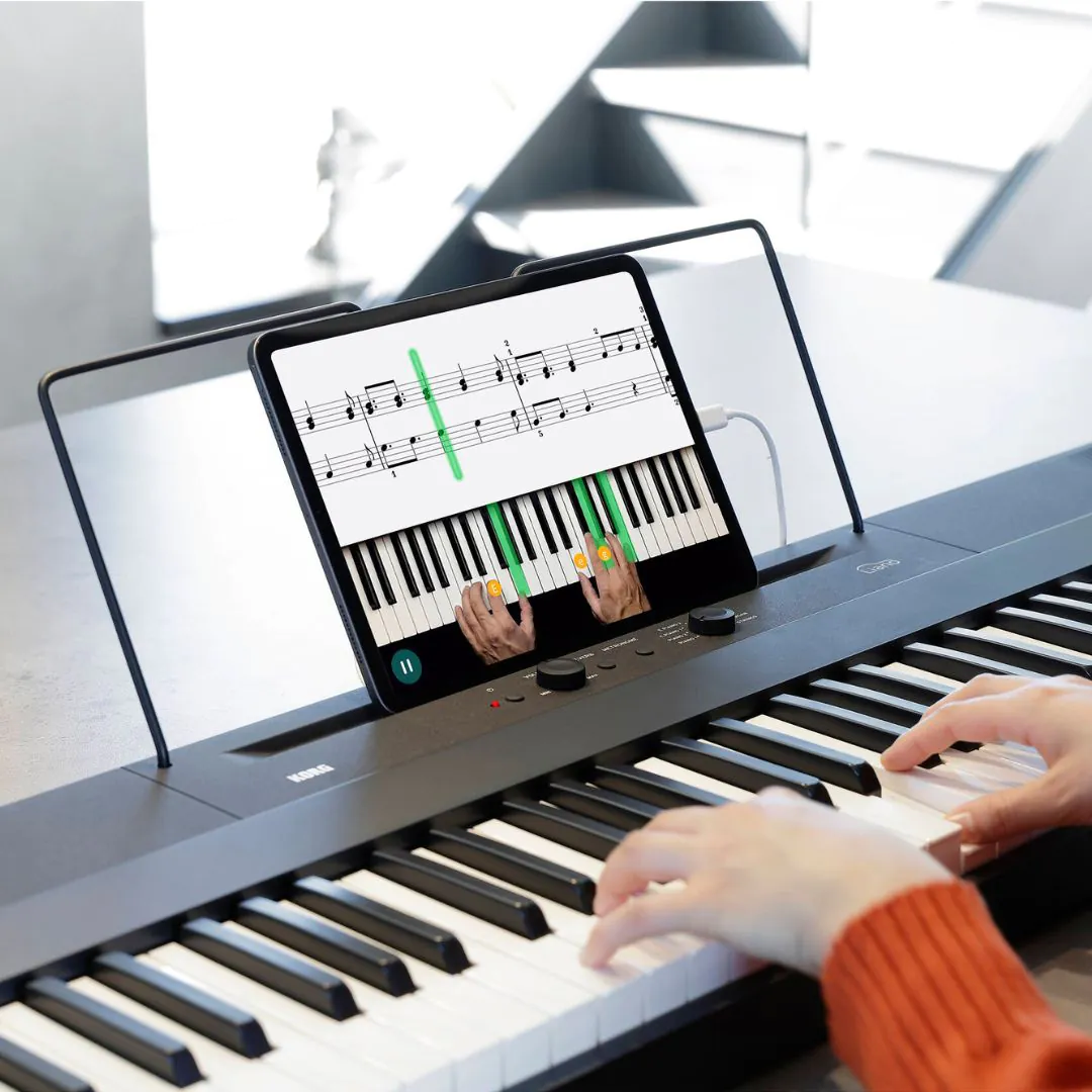 One of its standout features is portability — weighing only around 6 kg (13.2 lb) and capable of running up to 8 hours on six AA batteries, so you can play without being tethered to a power outlet. USB-B connectivity allows the Liano to function as a MIDI keyboard with DAWs and educational apps like Skoove, KORG Module, and KORG Gadget 2 Le, expanding its creative potential.