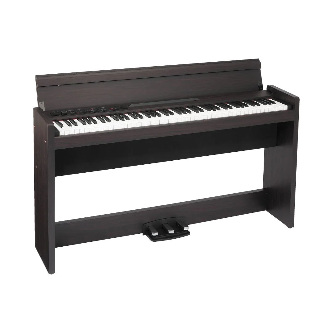 The Korg LP-380 features a Real Weighted Hammer Action 3 (RH3) keyboard for an authentic piano feel, offering 30 sounds, including pianos, electric pianos, and more. Layer Mode and Partner Mode provide versatile performance options.